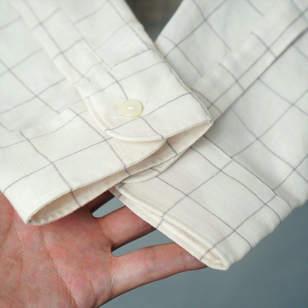 00s OLD Ralph Lauren ラルフローレン 格子柄 リネンシャツ 長袖 オフホワイト ナチュラル M