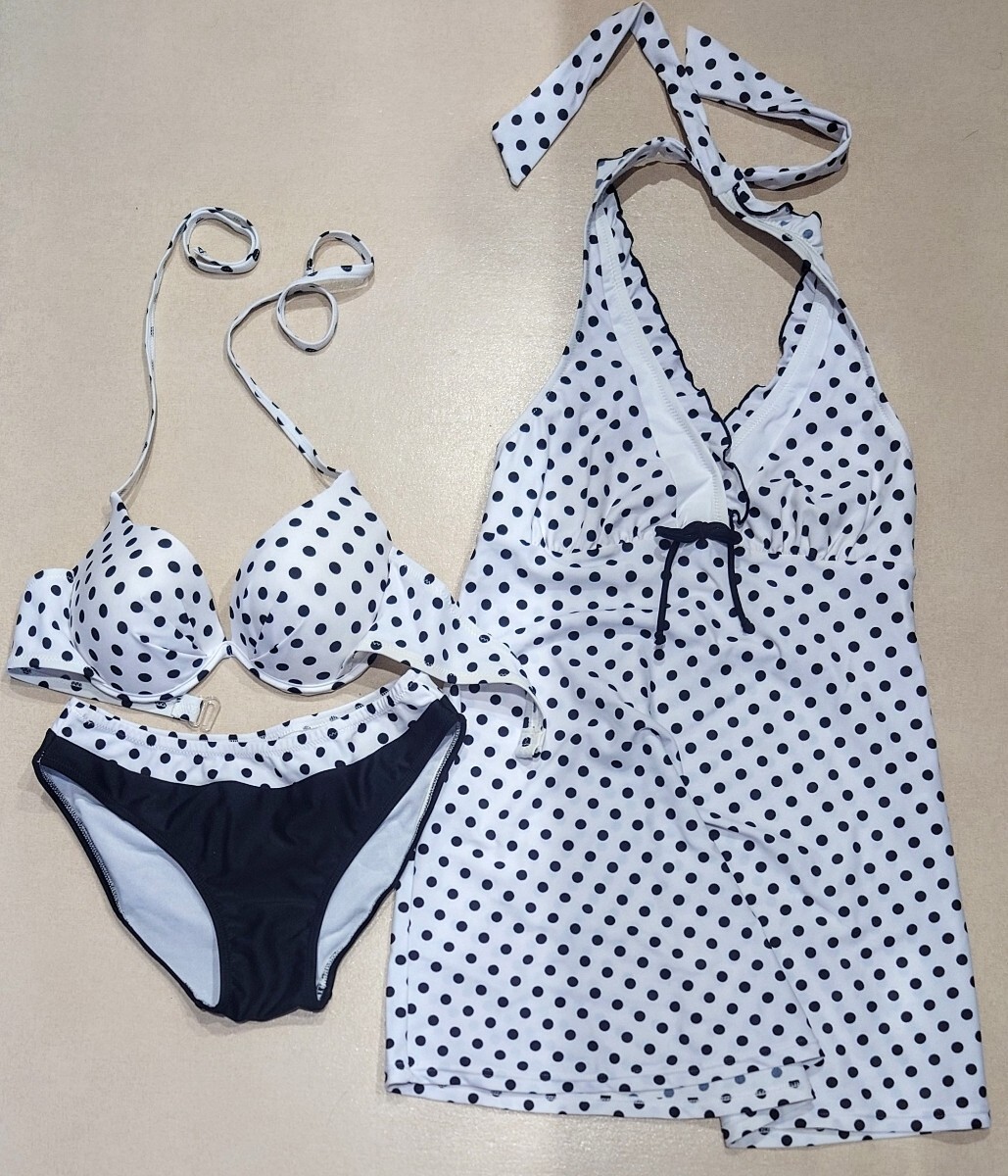 中古★レディース ビキニ 3点セット Lサイズ 11L 白 黒 ドット柄 水着 ホームクリーニング済み セパレート 匿名配送 同梱可