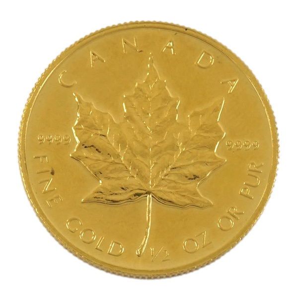 商品名 | 【中古B/標準】 24金 メイプルリーフ 金貨 1/2オンス 1/2oz ランダムイヤー カナダ 地金 純金 K24 メープルリーフ コイン 硬貨 貨幣 20220421 k24-1-2oz-cana-b | ||||||