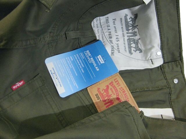 I土09302新品▼ リーバイス Levi's 505 レギュラーフィット クロップドパンツ W32 クロップドパンツ Levi's ストレッチ オリーブ系