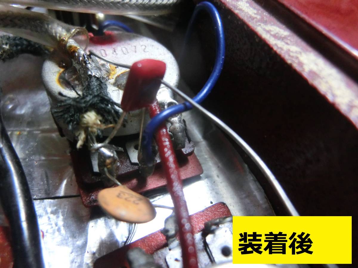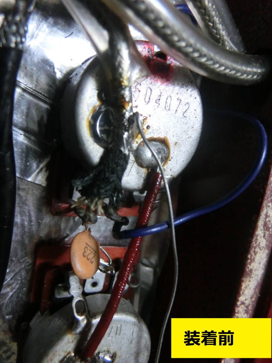 ハンダ付けなら確実ですが、ラジオペンチで曲げて絡ませるだけでも装着出来ますので、ビンテージでも可逆的に改造可能です。(装着前後の写真を参考ください)