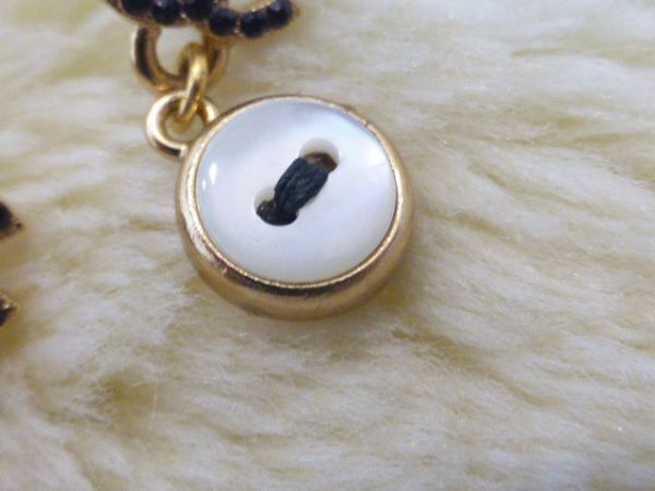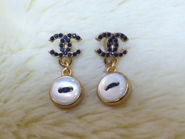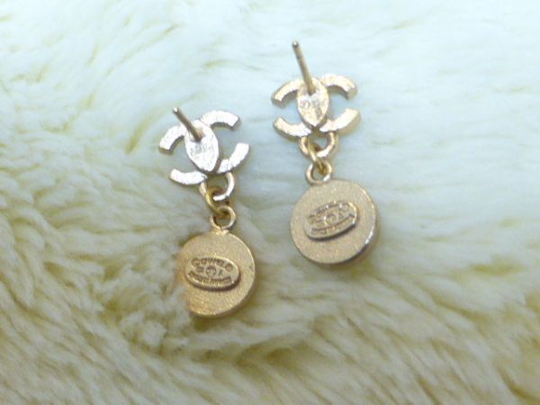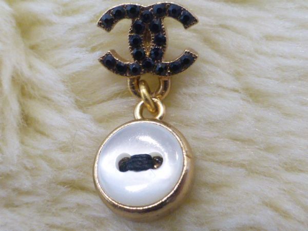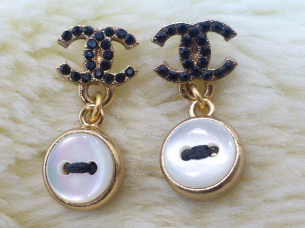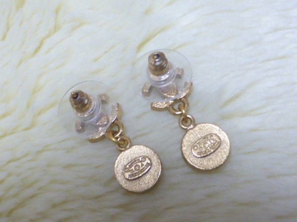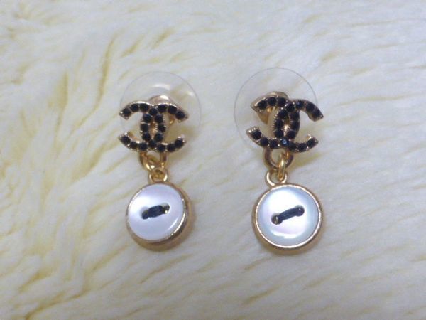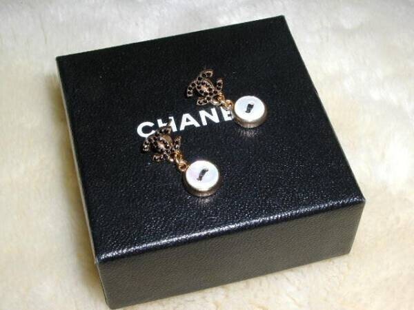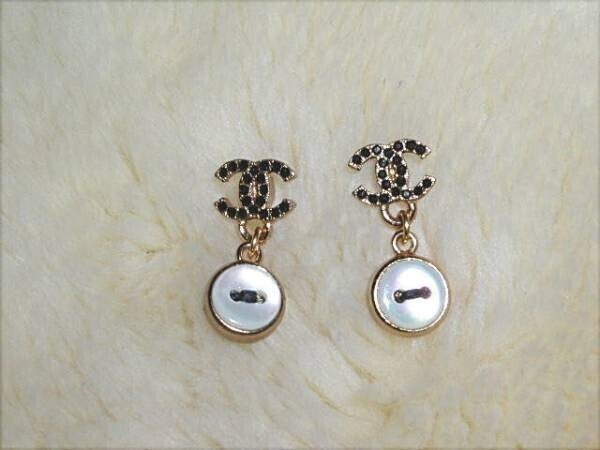 COCOマーク部分には黒のラインストーン  下の部分はパールシェル加工されたメインのお色はつや消しゴールドボタン型 ピアス裏には02Aの刻印(画像3)