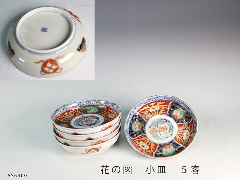【杜】 伊万里 色絵 割絵花の図 小皿 5客 AS6400