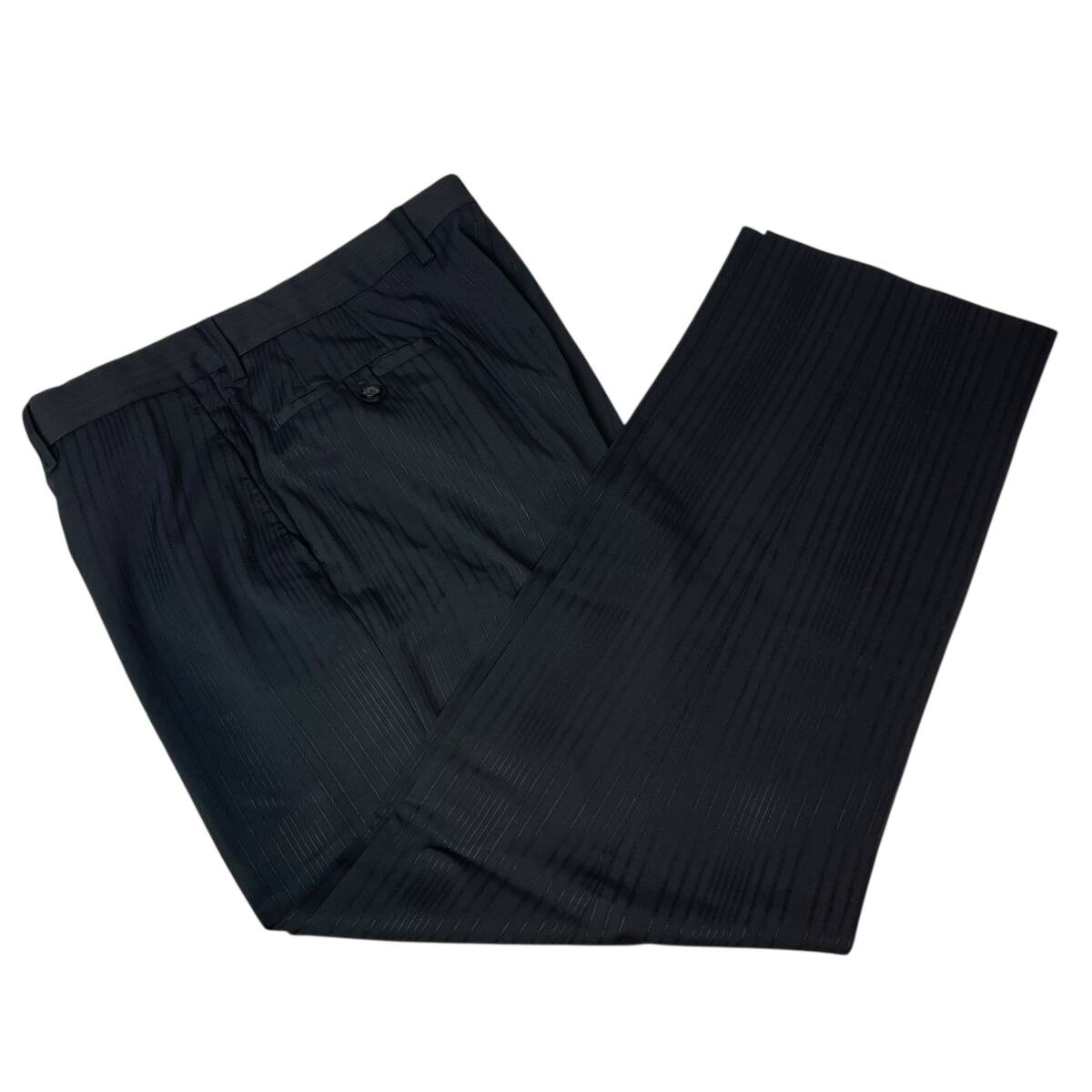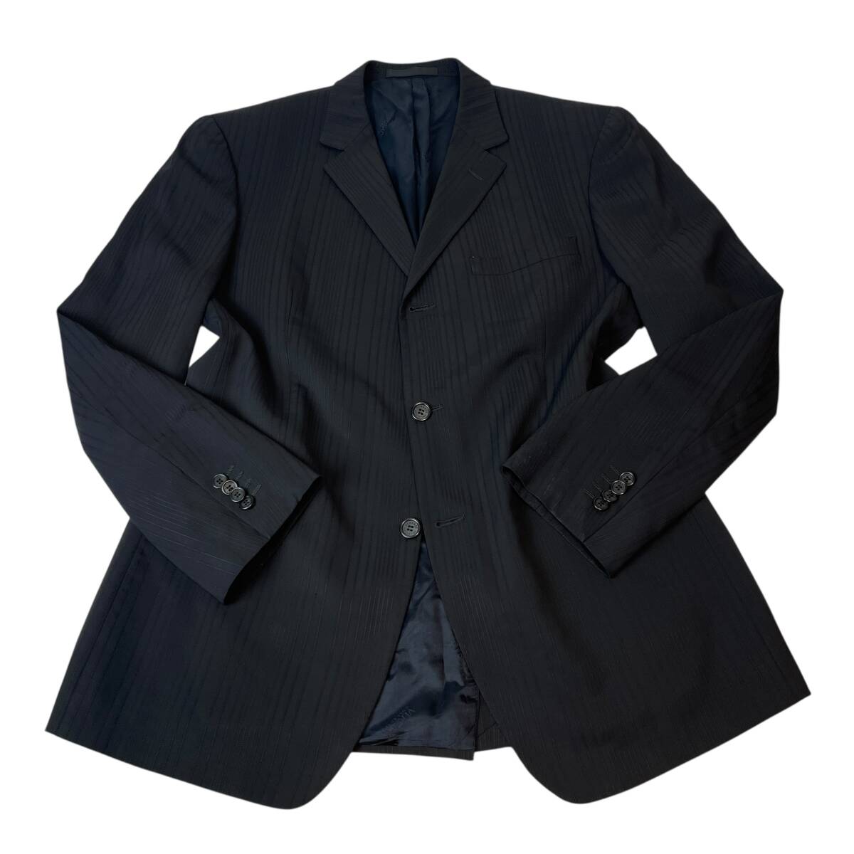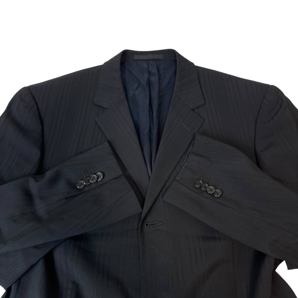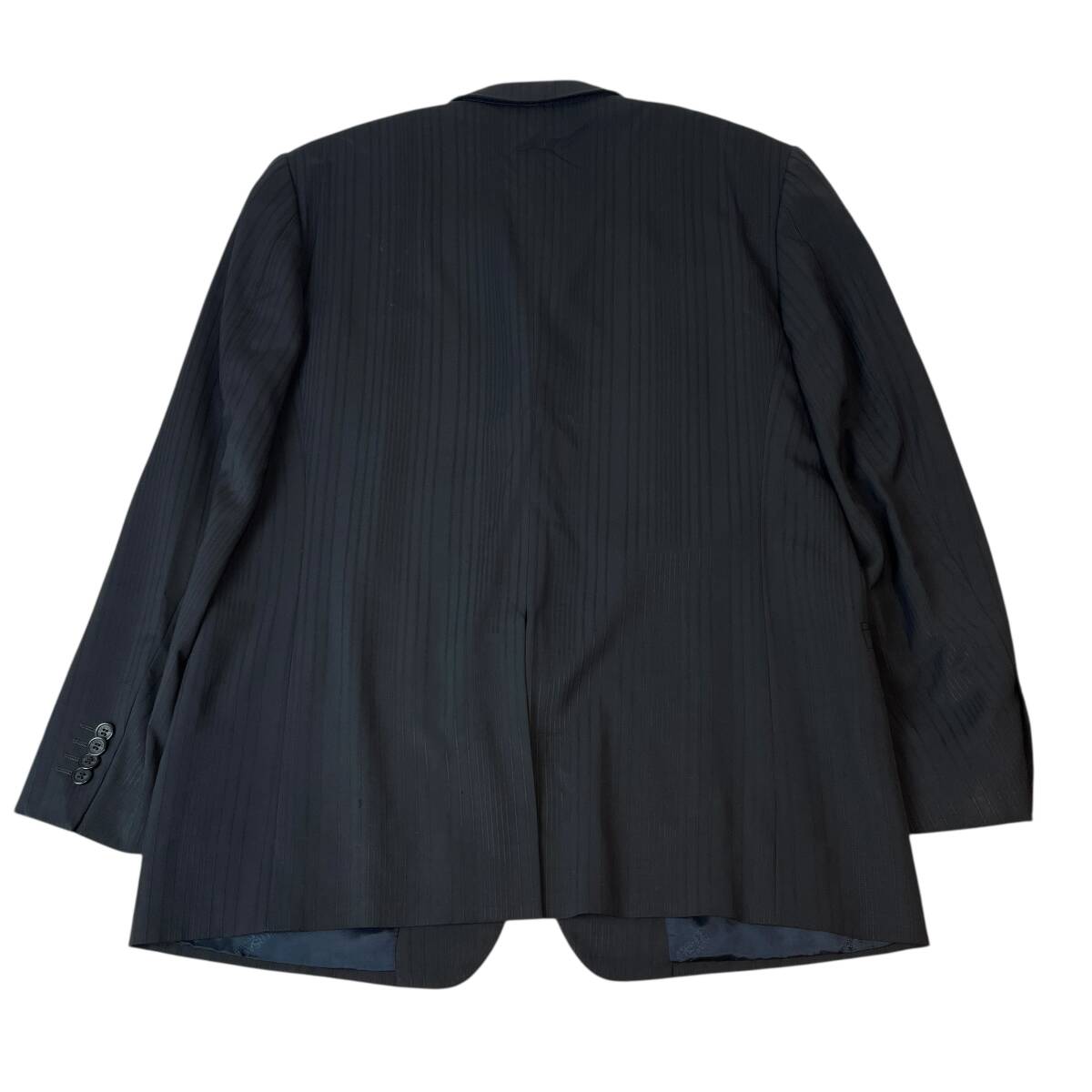 美品 希少52 VERSACE 3057 スーツ セットアップ ストライプ 裏地 総柄 ロゴ 3B XXL ヴェルサーチ ビジネス 最高級 ブラック 黒 メンズ