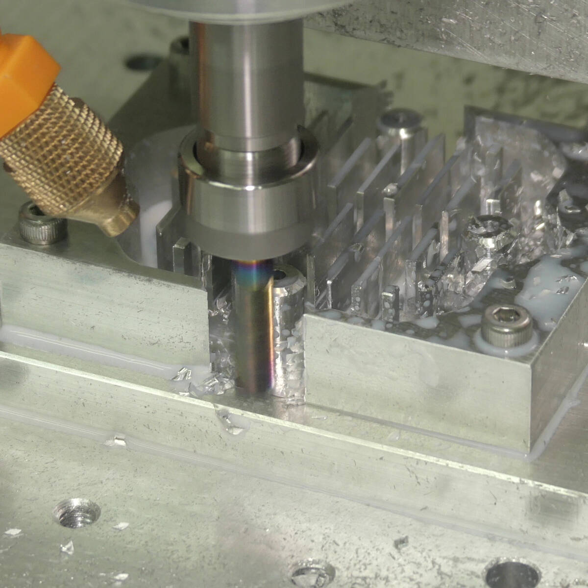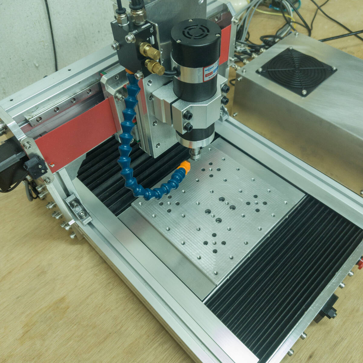6.微小量クーラントノズルを装備。エアーで少量の切削液を吹きかけることで安定したアルミの加工が可能となります。使用する切削液は少量のため囲われていないオープン型のCNCでも使用が可能なクーラントです。