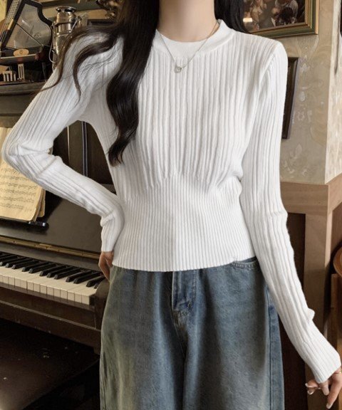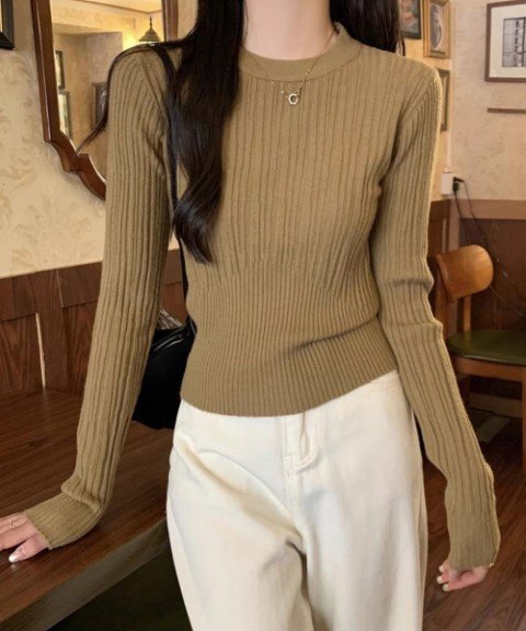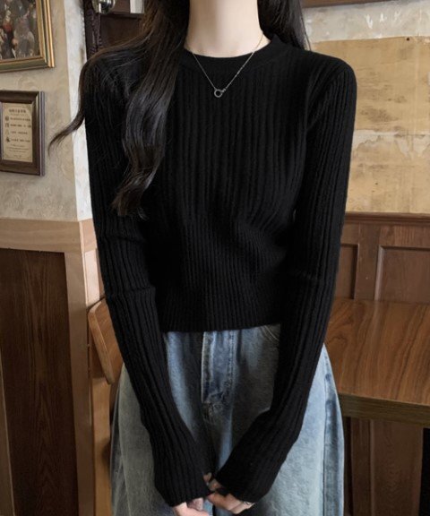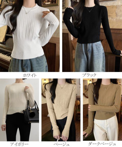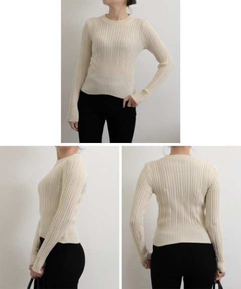 様々なコーデに使えるベーシックなクルーネックのニットトップスです。