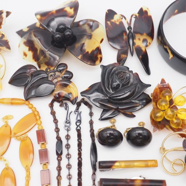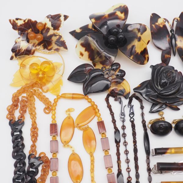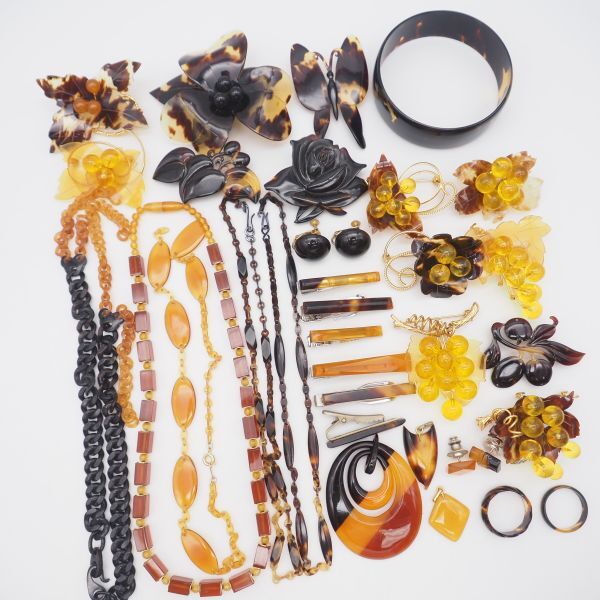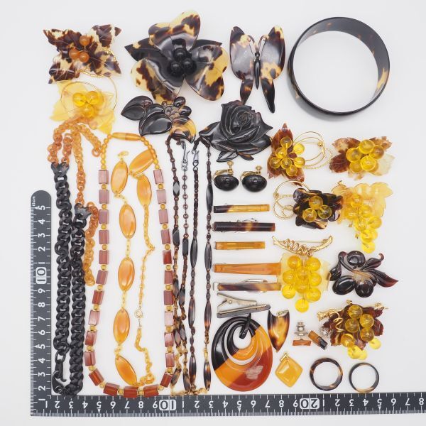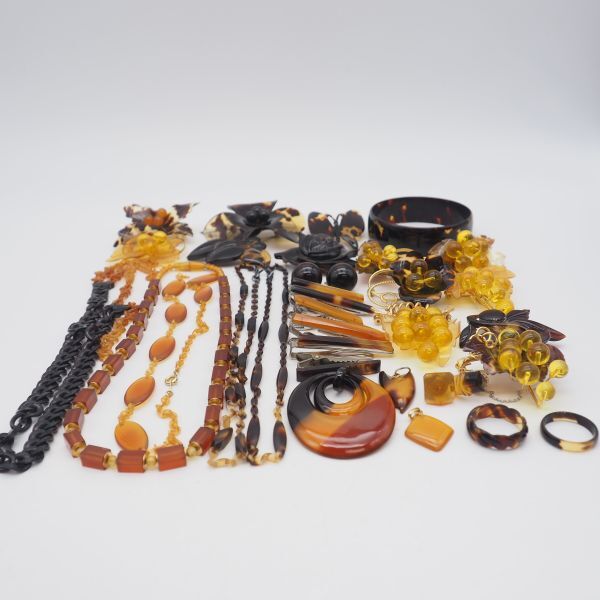 (TB0902) 1円 べっ甲 アクセサリー 大量 セット 鼈甲 ネックレス バングル ペンダントトップ イヤリング ブローチ 指輪 等 まとめて
