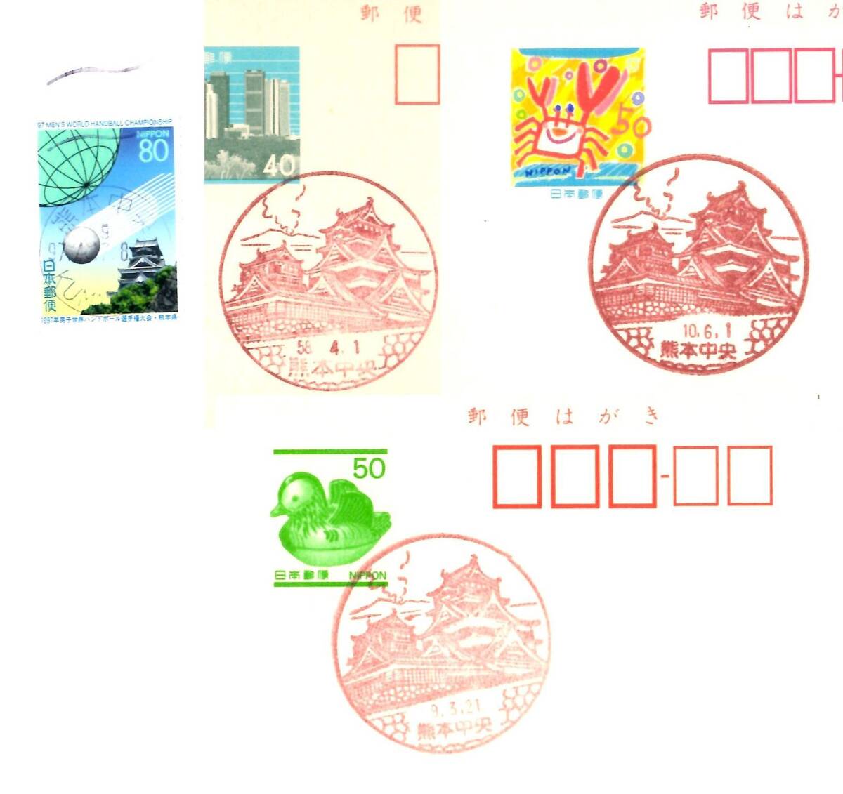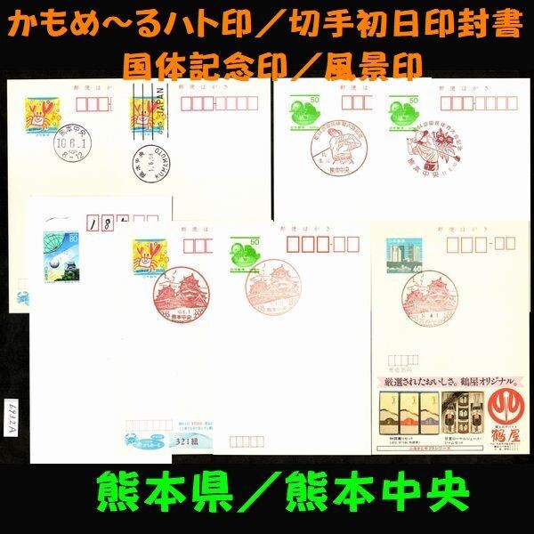 6932A■消印【かもめ~るハト印x2 + 初日印封書 + 国体印x2 + 風景印x3】熊本中央◆内容・状態は画像だけでご判断◆送料特典⇒説明欄