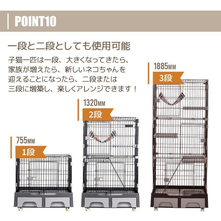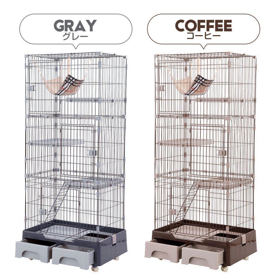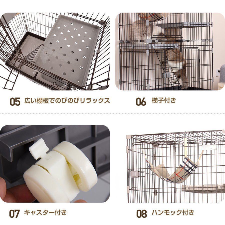 【期間限定1500円値下げ】猫 ケージ 3段 キャットケージ 大型 キャスター付 ハンモック付 猫トイレ付 猫ゲージ 脱走防止【3色選択可】