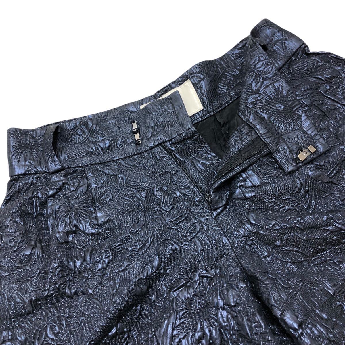 9Nm321-44 Kaon カオン シルク混 花柄 ジャガード タック ショートパンツ パンツ ズボン ボトムス ネイビー 紺 レディース 38 日本製