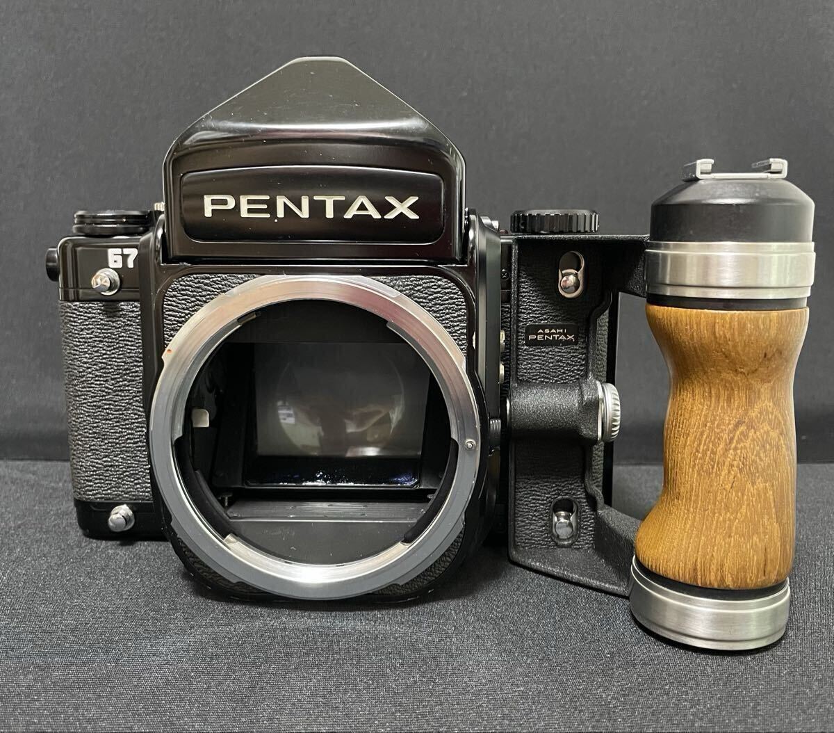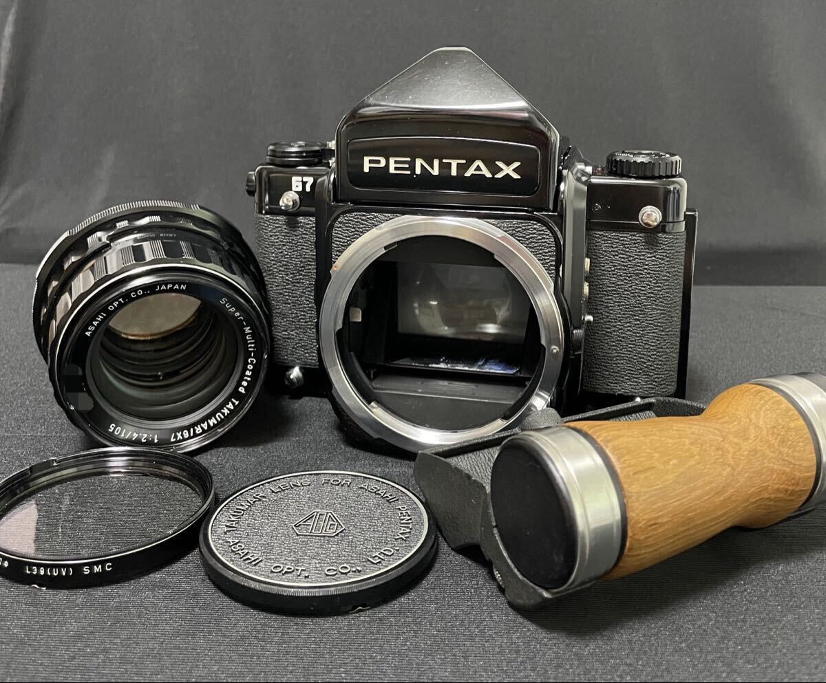 【OH済み】 PENTAX 67 後期型 ミラーアップ 105mm f2.4 交換レンズ 状態良いです。 木製グリップ付 0813