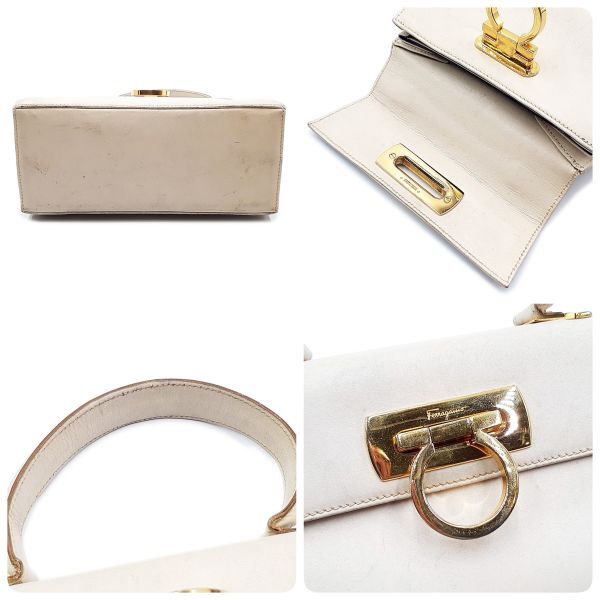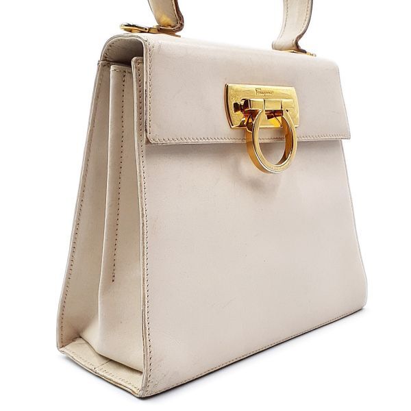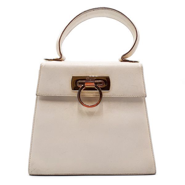 サルヴァトーレフェラガモ Salvatore Ferragamo ハンドバッグ 鞄 ガンチーニ レザー ゴールド金具 G金具 白 ホワイト系 01-25091002-I