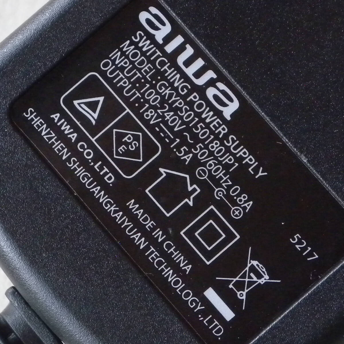 アイワ AIWA ネットストリーミングスピーカー XR-WS100 純正 ACアダプター GKYPS0150180JP1 センタープラス 18V 1.5A ピン無し 5.5mm 2.1mm