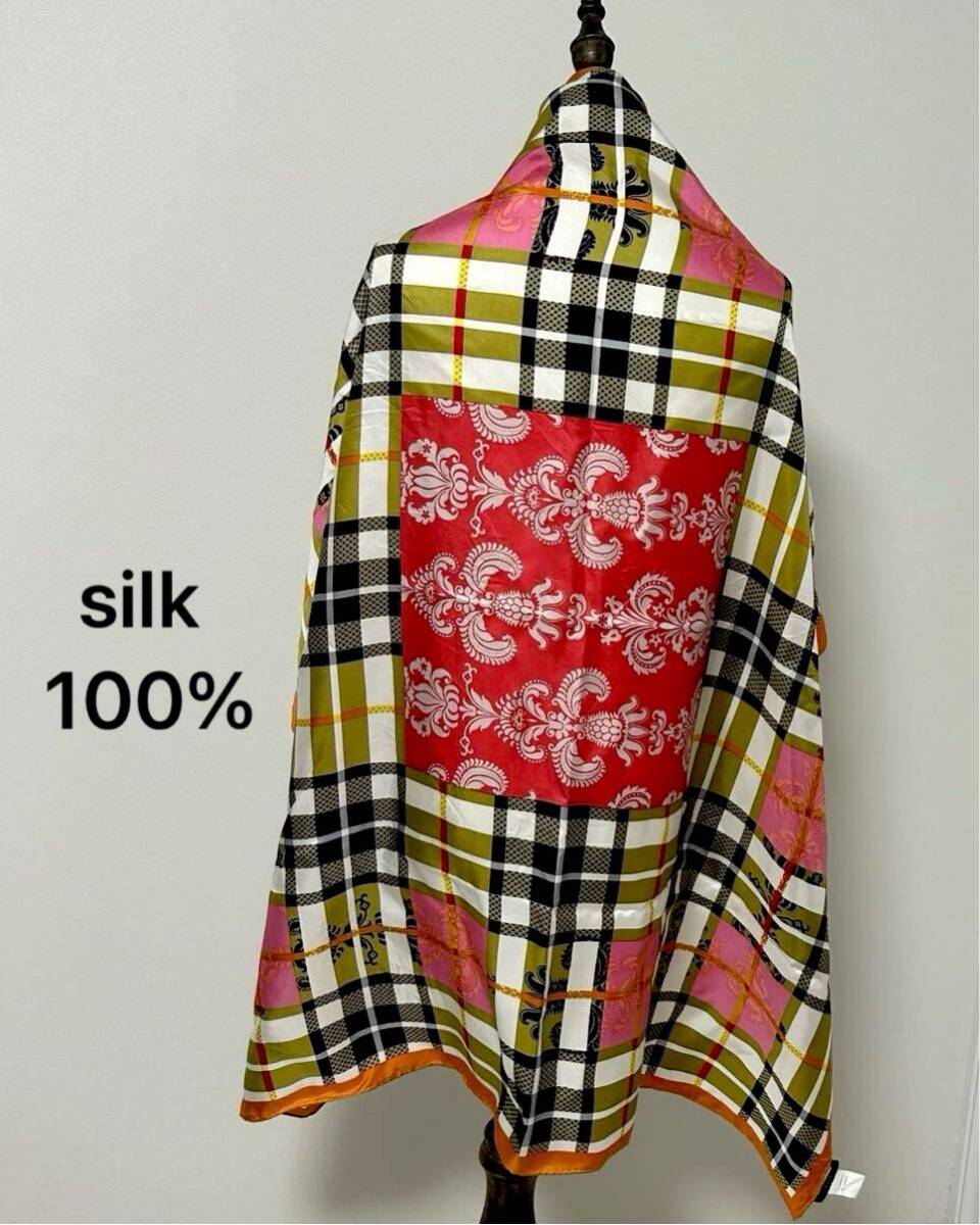 とても大判でチェックとペイズリーのバイカラーがおしゃれで個性的