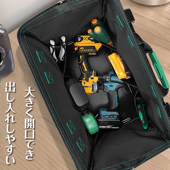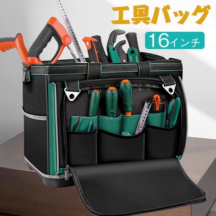 ツールバッグ ツールボックス 工具バッグ 道具袋 工具差し入れ 大容量 大口収納 1680Dオックスフォード ワイドオープン 強化底 ☆16インチ