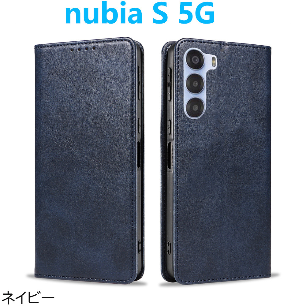 商品名 | ネイビー nubia S 5G ケース 手帳型 PUレザーケース 人気 カード収納 A403ZT おすすめ マグネット スタンド 衝撃吸収 ベルトなしスマホケース ヌビア エス TPUスマホカバー 手触りの良い高品質PUレザー |