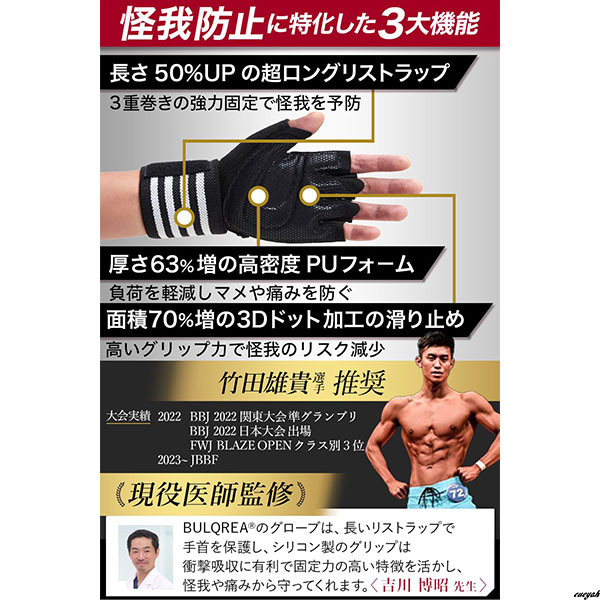 長さ50%UPの超ロングリストラップで手首をしっかり固定できるトレーニンググローブです。