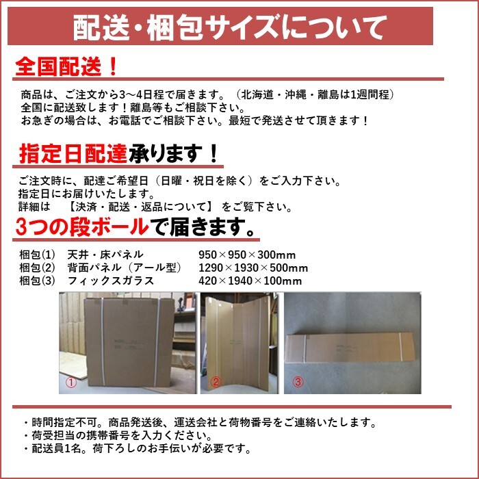 ・大型商品になりますので荷受けの際には、商品受取時、荷降しをお手伝いください。原則一階玄関渡しです。