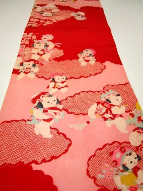 F-41★赤ピンク*祭り唐子*狛犬*宝船*正絹*古布はぎれ★吊るし雛/市松人形/一閑張り/文化人形