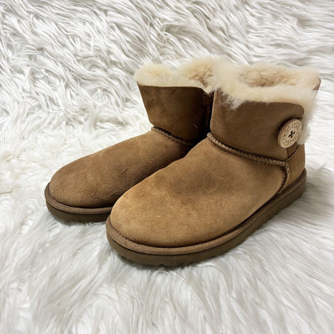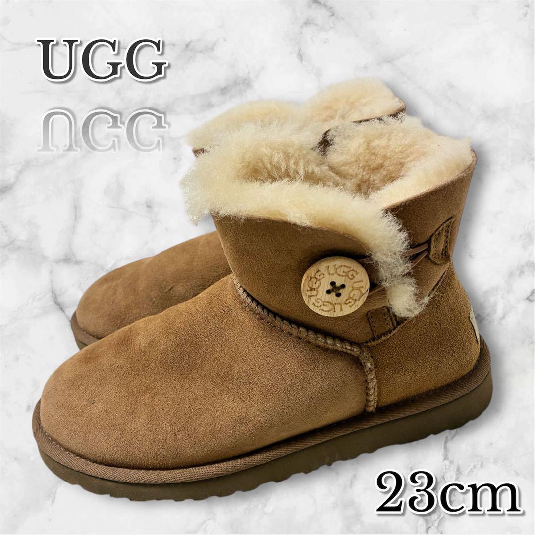 UGG アグ ムートンブーツ ショート丈 23cm ボタン ベージュ 靴 冬
