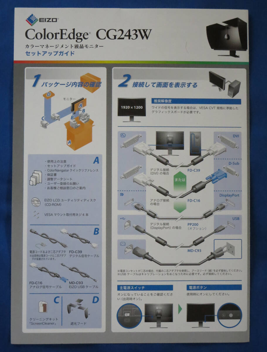EIZO ColorEdge CG243W 24.1インチ 液晶モニタ 遮光フード,ColorNavigatorソフト・測定器,EasyPIX Software付(中古動作品)