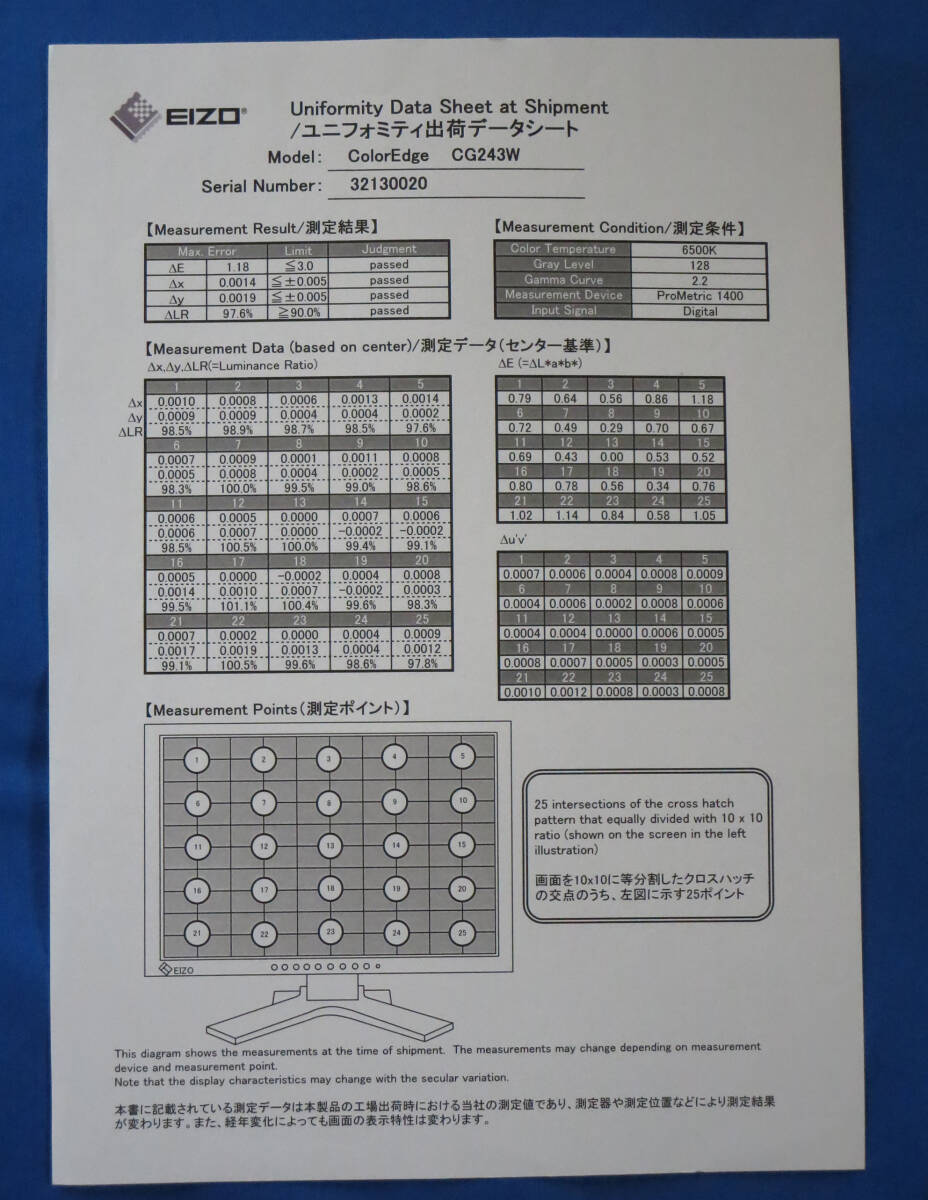 EIZO EasyPIX Software一式(マニュアル、Disk)、ユニフォミティ出荷データシート、