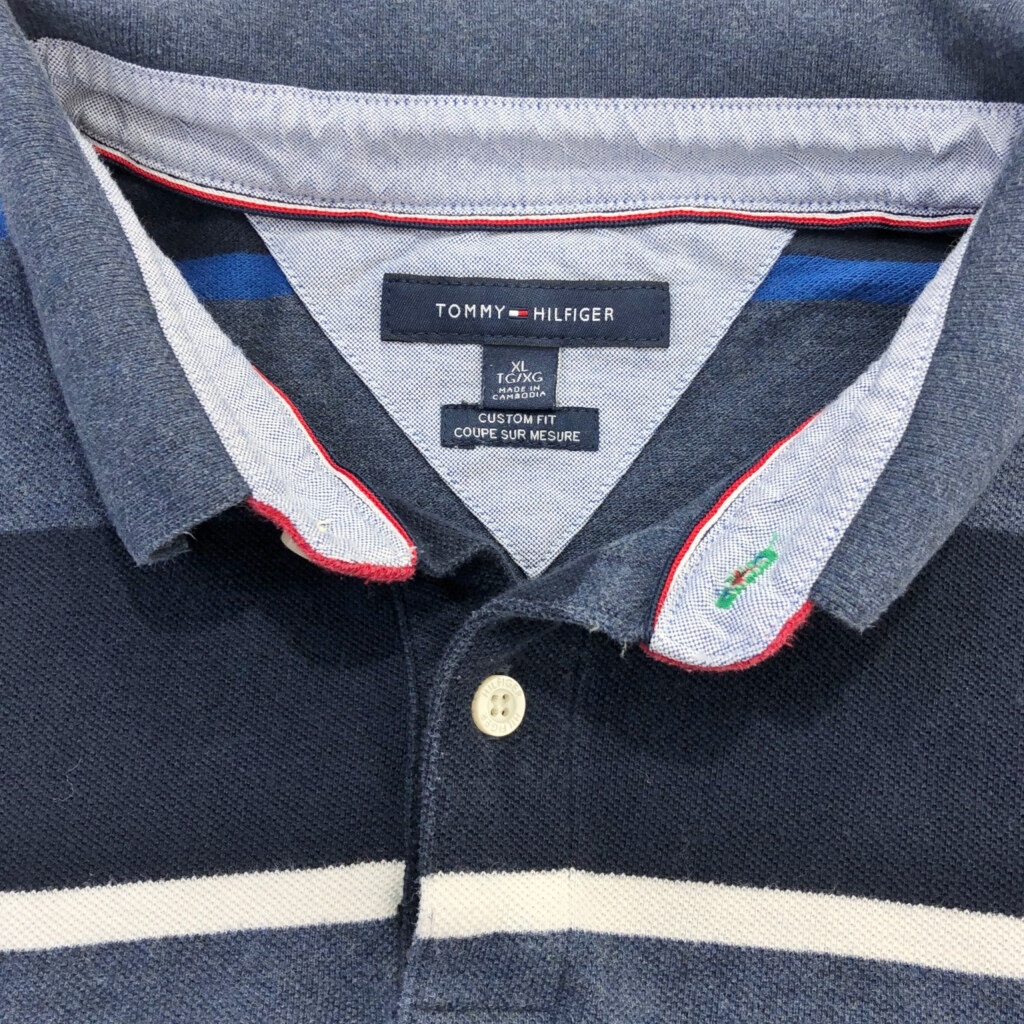 【商品管理番号】 T4299 【ブランド】 TOMMY HILFIGER/トミーヒルフィガー 【サイズ】 XL 【実寸サイズ】 肩幅:約49cm 着丈:約71cm 身幅:約57cm 袖丈:約66cm 【主な素材】 表地 : コットン 【色】 マルチカラー 【仕様】 ボーダー 【状態】 特記事項:毛羽立ち |