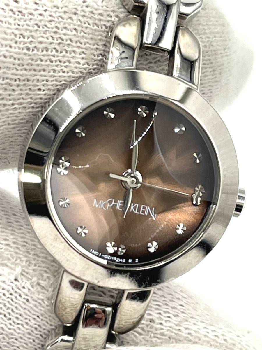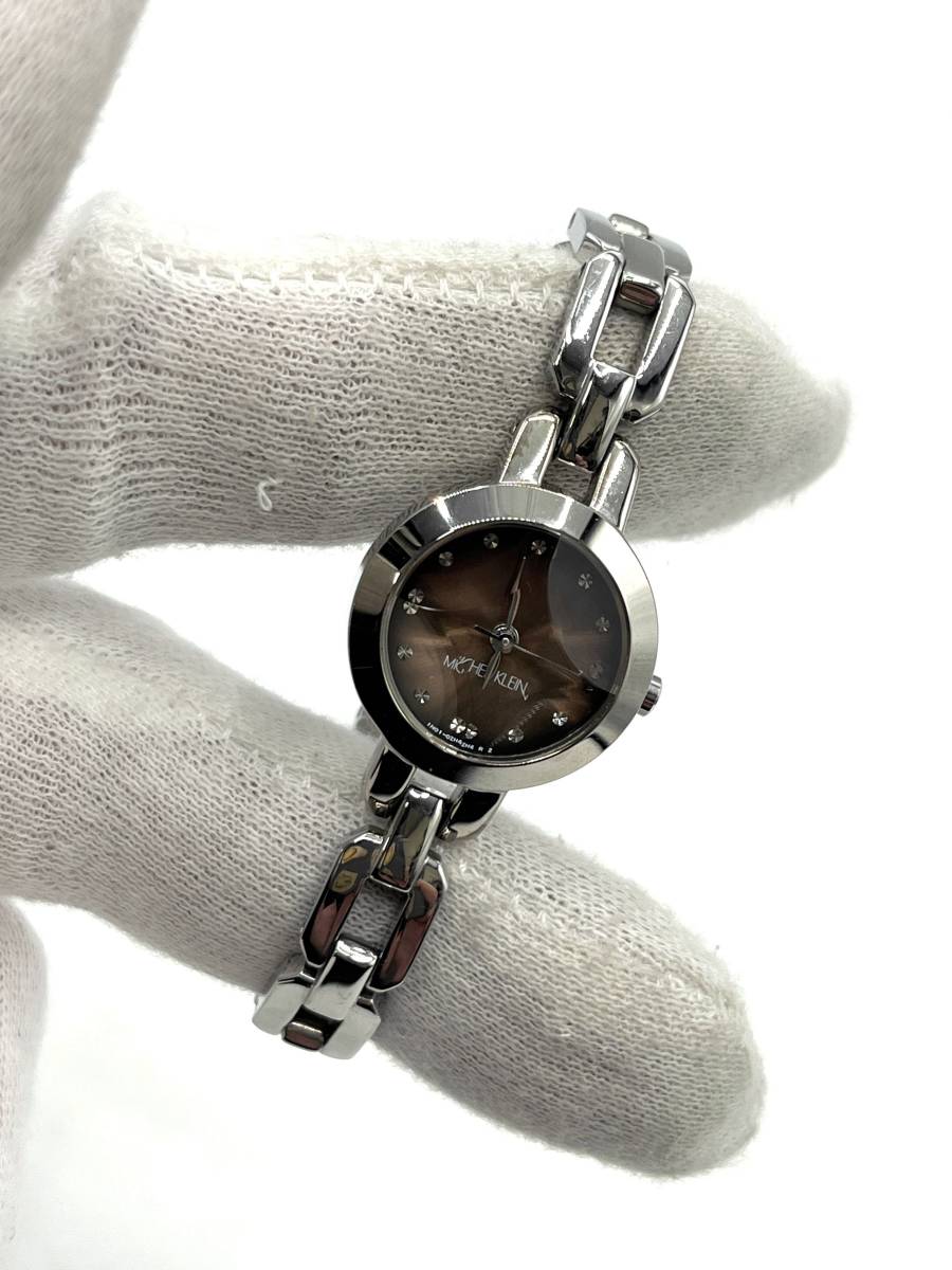 【電池切れ】MICHEL KLEIN ミッシェルクラン クォーツ 腕時計 ブラウン文字盤 カットガラス ラウンド ケースシルバー 1N01-0ND0