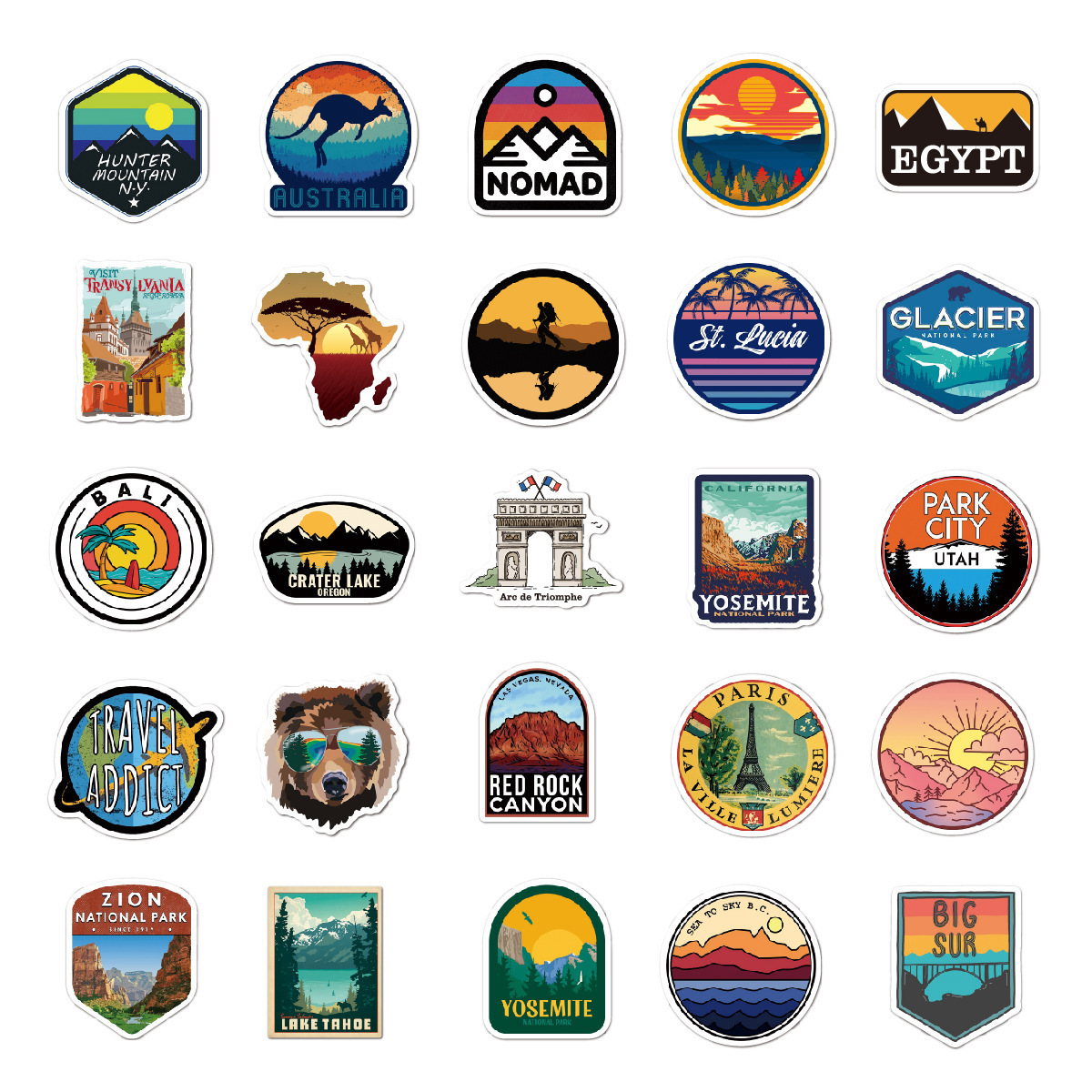 【ステッカー】全50枚・地球 フランス ロンドン ブラジル バリ 飛行機(送料無料!)