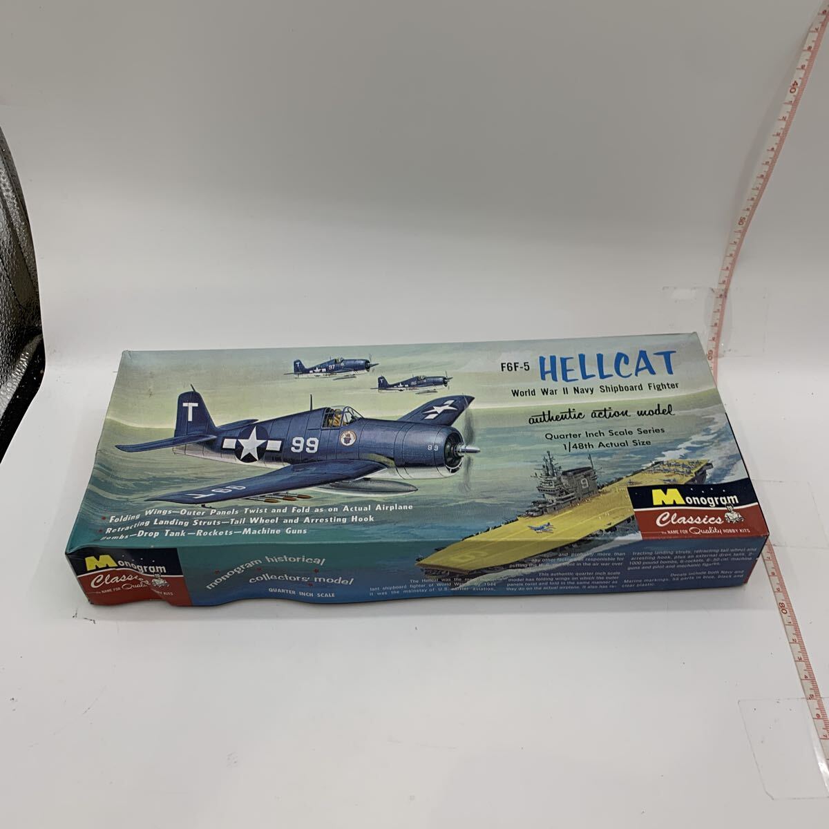 中古 プラモデル アメリカ海軍軍用機 Monogram F6F-5 HELLCAT 1/48th Actual Size Quarter Inch Scale Series 現状品84211180R