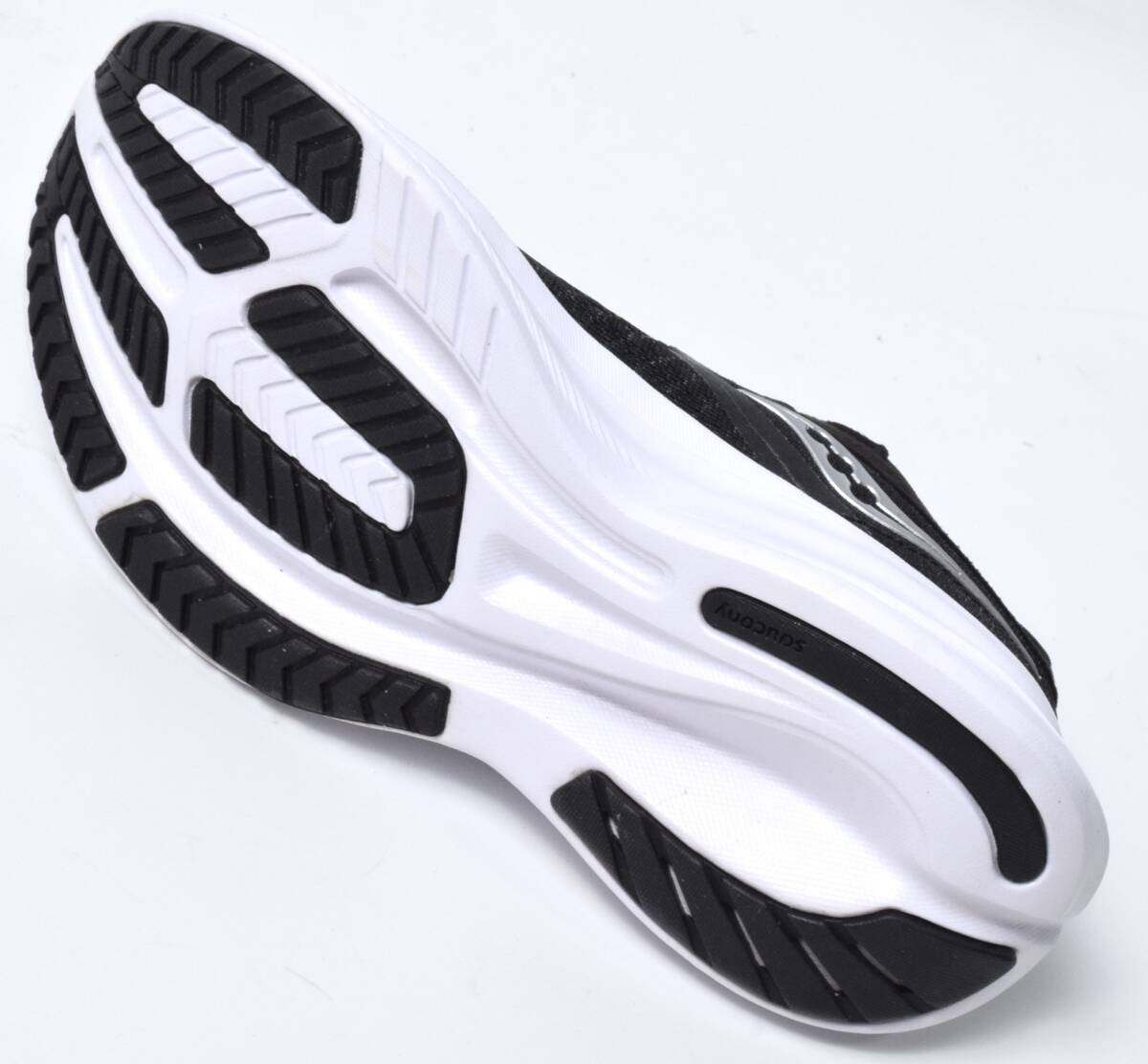 ミッドソールに搭載のPWRURUNクッショニングがよりソフトなクッショニングを提供し、快適な走りを実現。 レースアップした瞬間に踵からつま先まで楽に移行する滑らかな走りを実感できる。