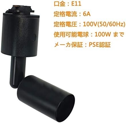 Pispoer ダクトレール用スポットライト E11口金 電球なし ライティングバー用照明器具セット配線ダクトレール用 E11 LEDスポットライト 天井照明 照射角度調節可能 黑い 6個セット