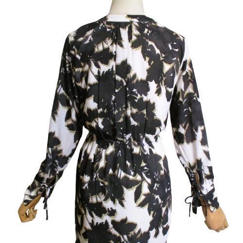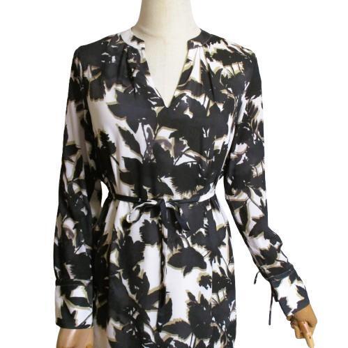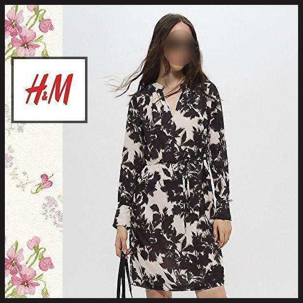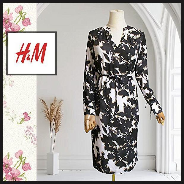 【H&M/エイチアンドエム】ワンピース 総柄 長袖 ゴムウエスト 膝下 手洗い 通勤 オフィス お仕事 お食事会 普段 匿名発送