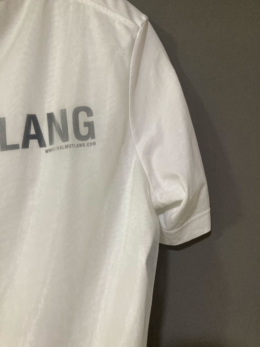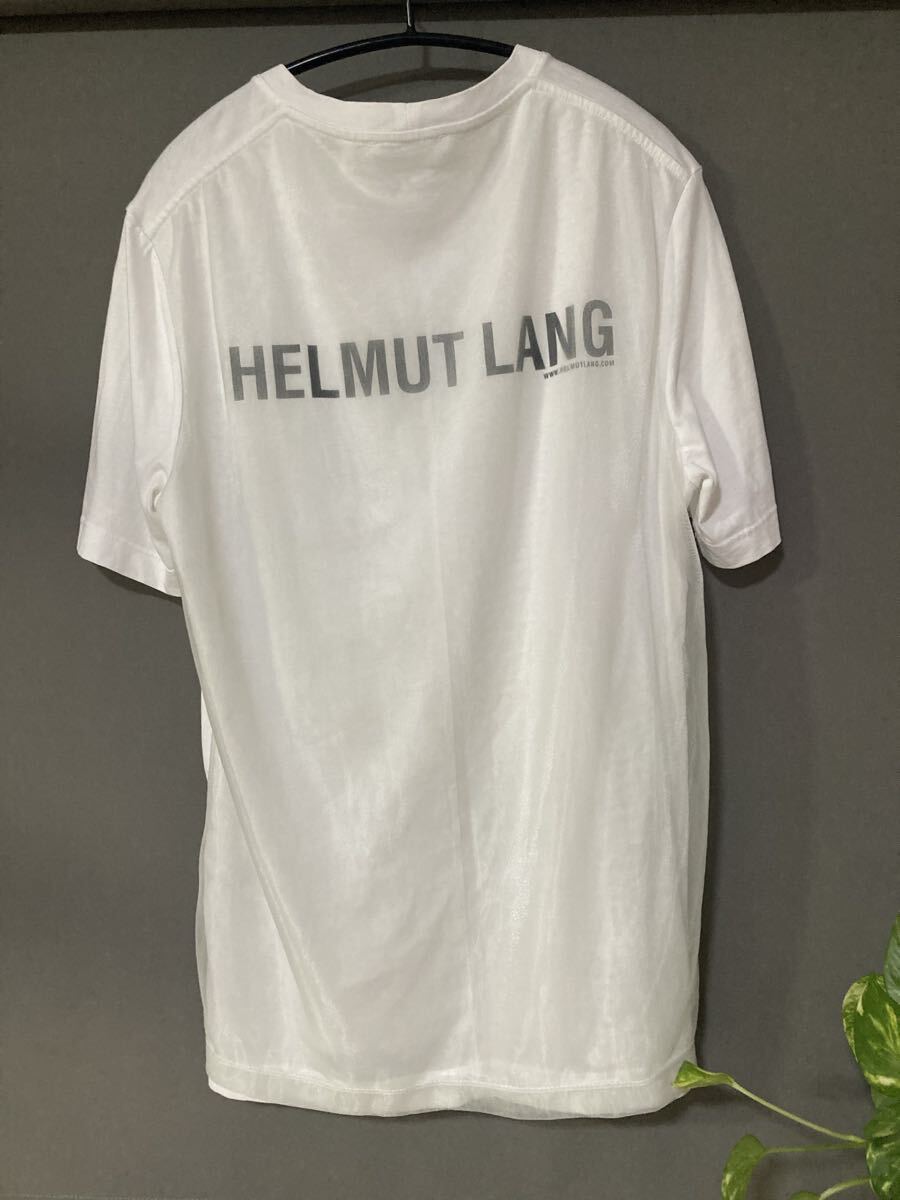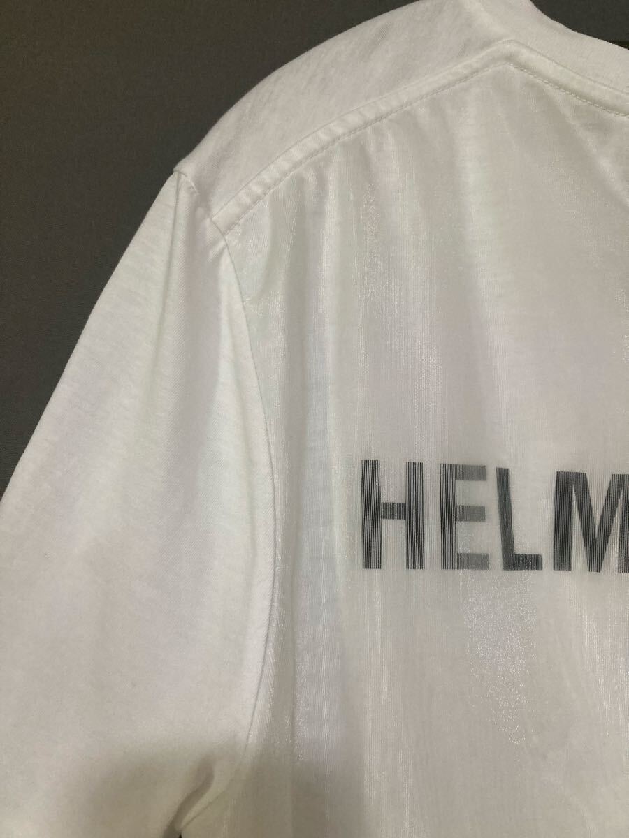 バックはHELMUT LANGのロゴプリントにシアー生地を被せたデザインTシャツ