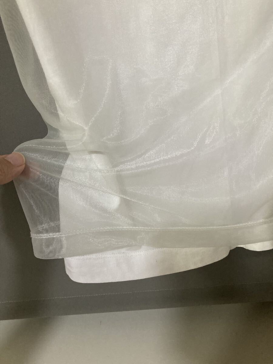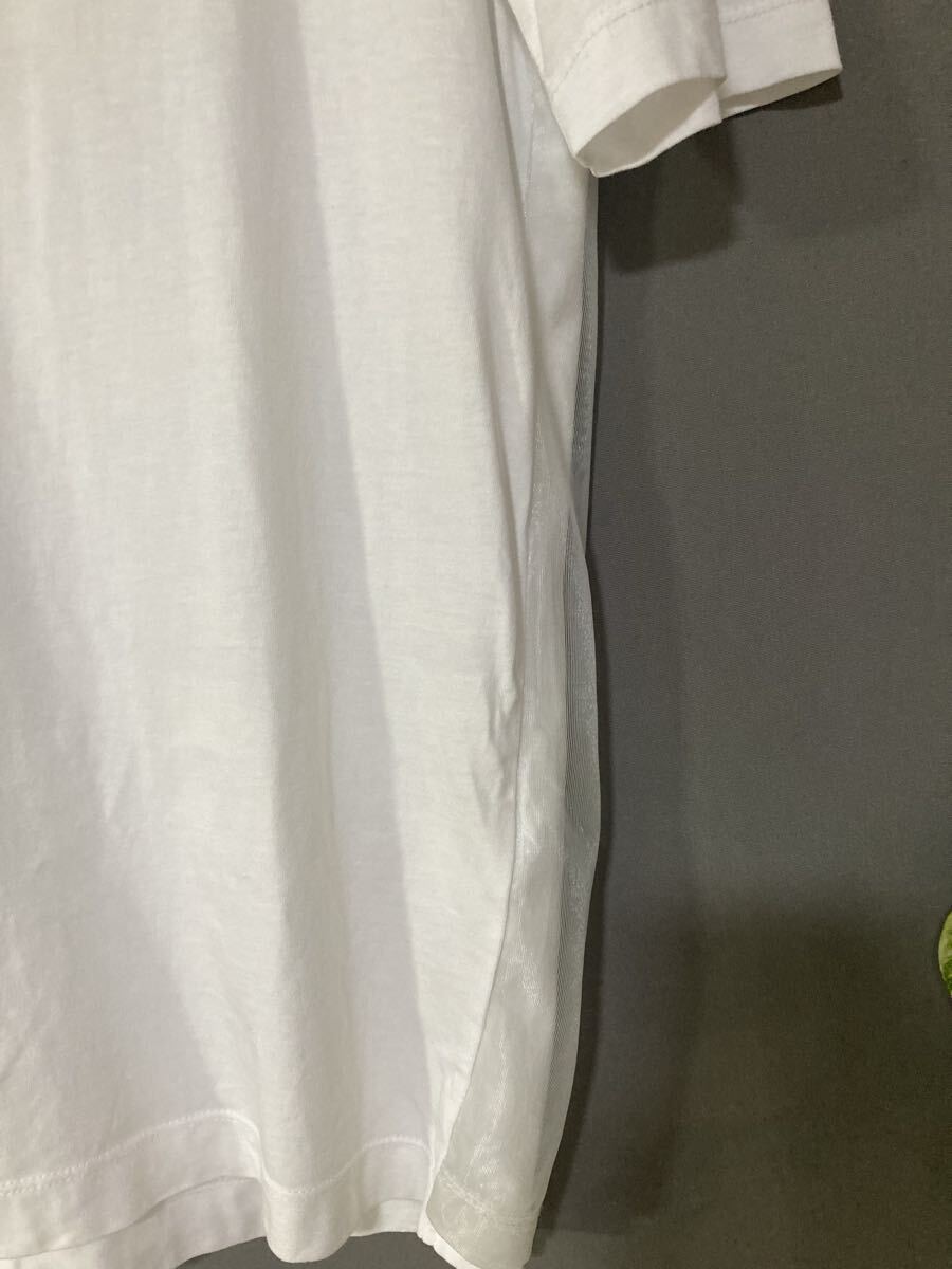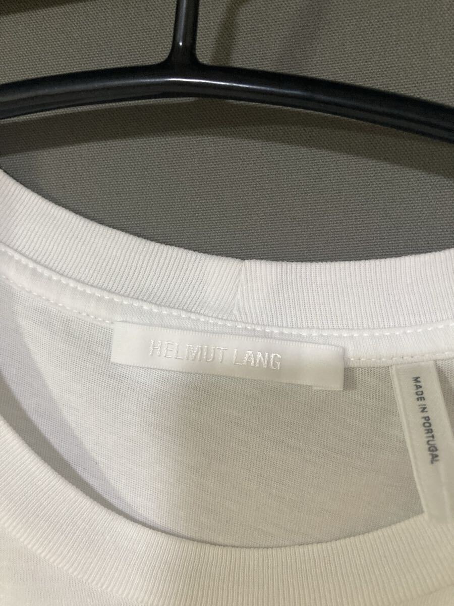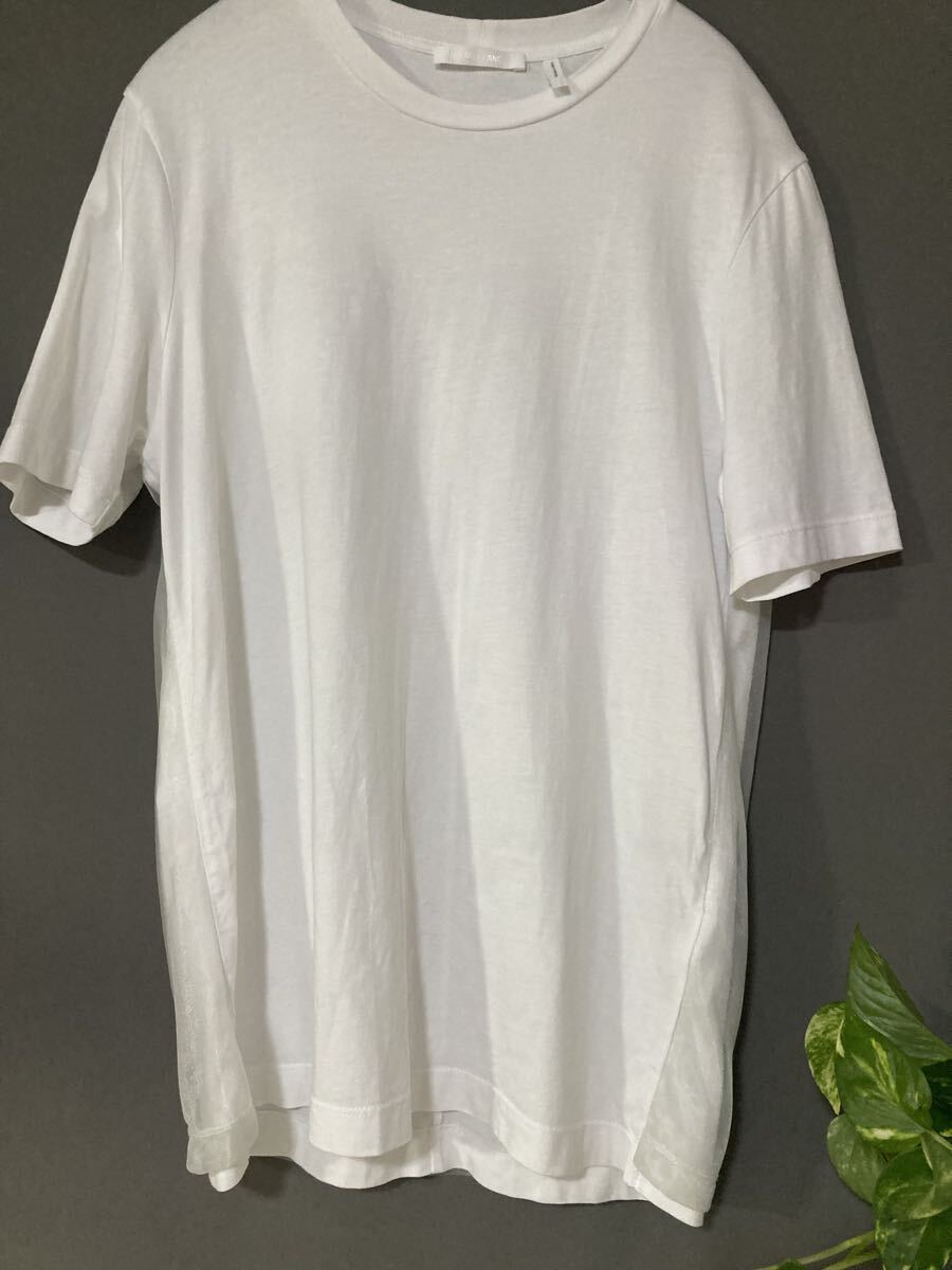 バックはHELMUT LANGのロゴプリントにシアー生地を被せたデザインTシャツ