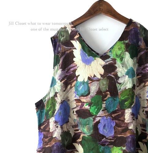 さらさらとした落ち感のある通気性の良い柔らかな素材。着こなし次第でロングシーズン対応。サイドタック入りでふんわりシルエット。便利なシームポケット付きです。カーディガンのインナーとしても最適。春夏~秋口まで大活用いただけます。お洒落な総柄・華やか且つ落ち着いた配色の水彩風フラワープリント。