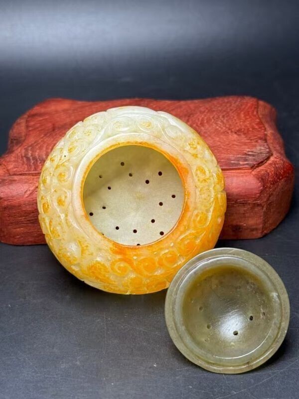 【美の継承】中国古美術【和田玉透彫香炉】高古玉香炉 巧雕鏤空 招財開運 透彫 手彫 高浮彫 お守り 天然石 置物 R07071920