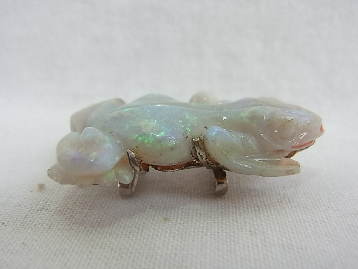 ●●●【未使用品シルバ-925特大オパ-ルサイズ33.5×22mm.【蛙帯留め】.オパ-ル独特の良い色合の出ているオパ-ルです:新品で御座いませんが未使用の:◆特注手作りの一品製品です。