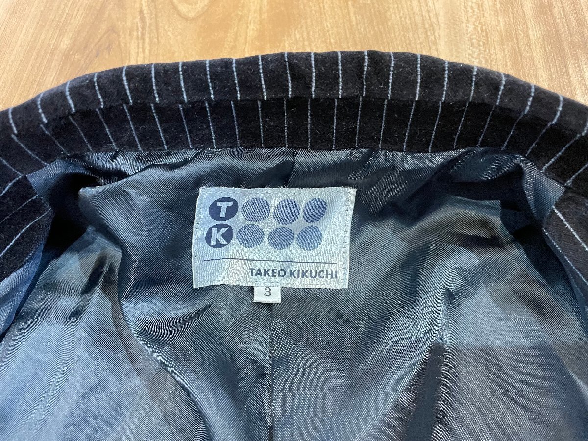 限定セール!極美品 タケオキクチ ベロア テーラードジャケット 3 メンズ ブラック系 コットン100% ベルベット 日本製 あ‐5