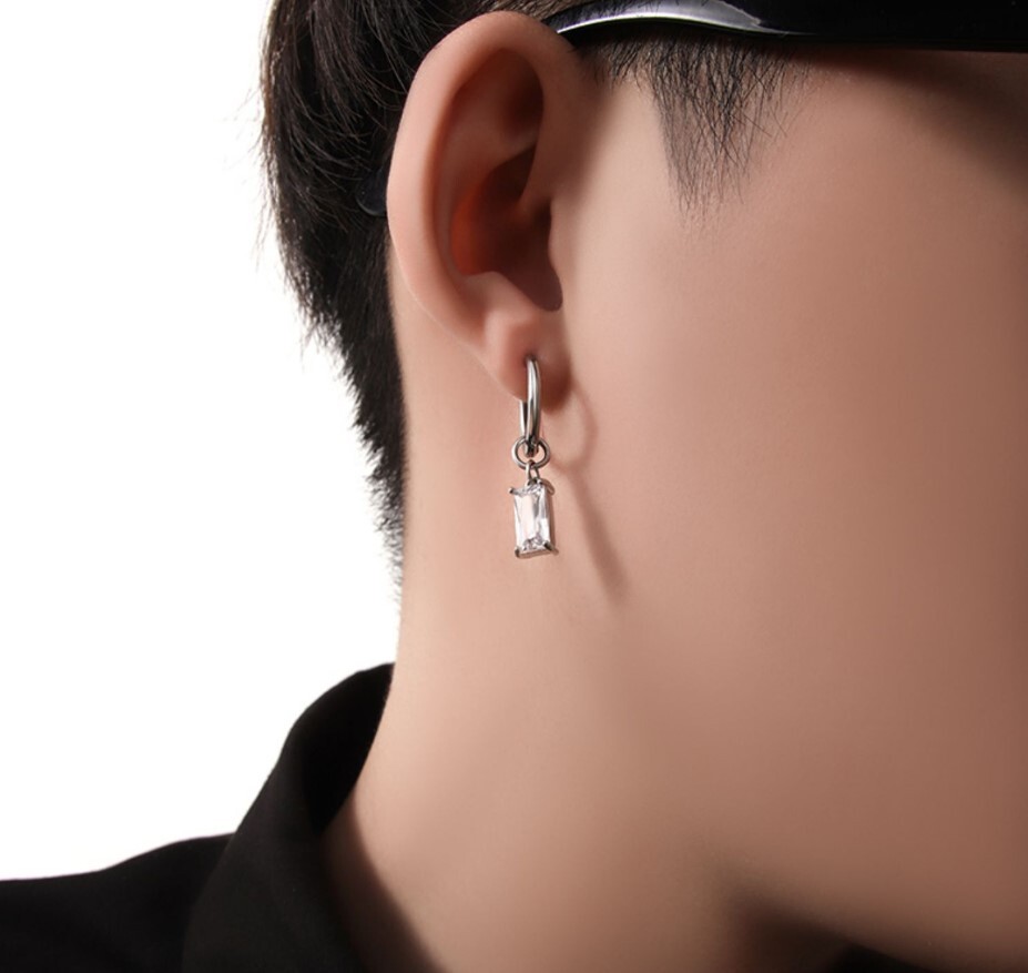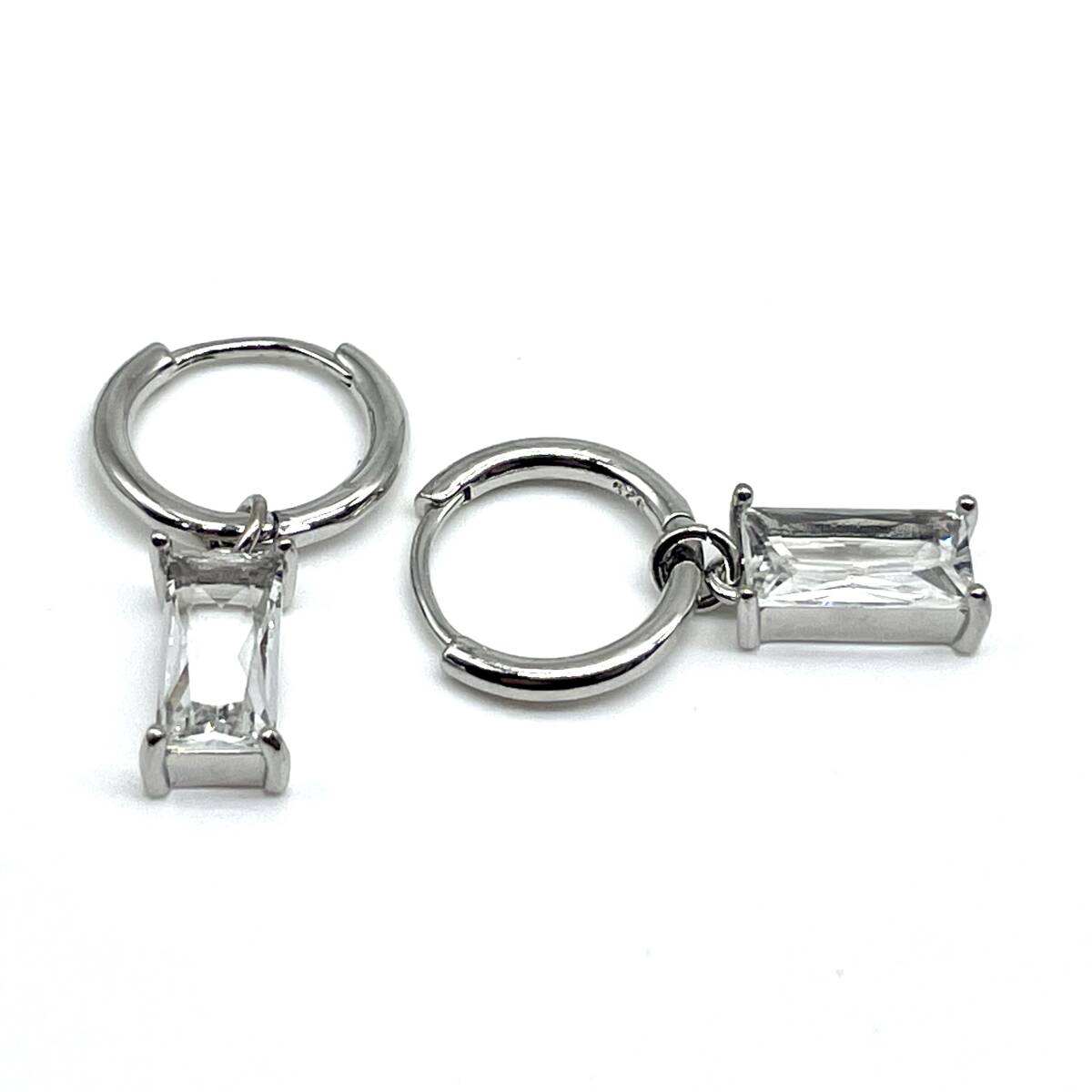 ジルコニア ストーン フープピアス ◆ リングピアス メンズ シルバー925 18G C 新品 人気 未使用 ストリート カジュアル 韓国系【PN262-6】