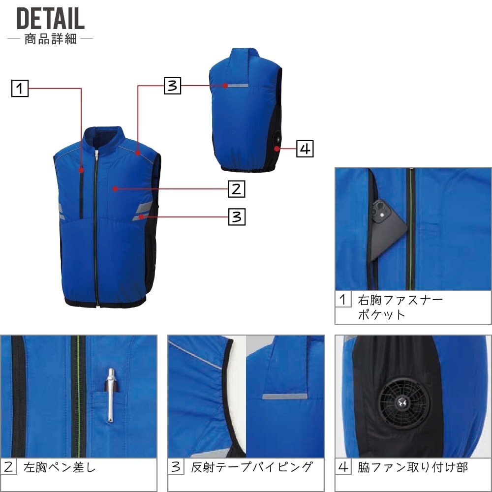 仕様:調整紐(首元)/左内側パッテリー専用ポケット/右胸ポケット/右脇ペン差し/袖口ニットバインダー仕様