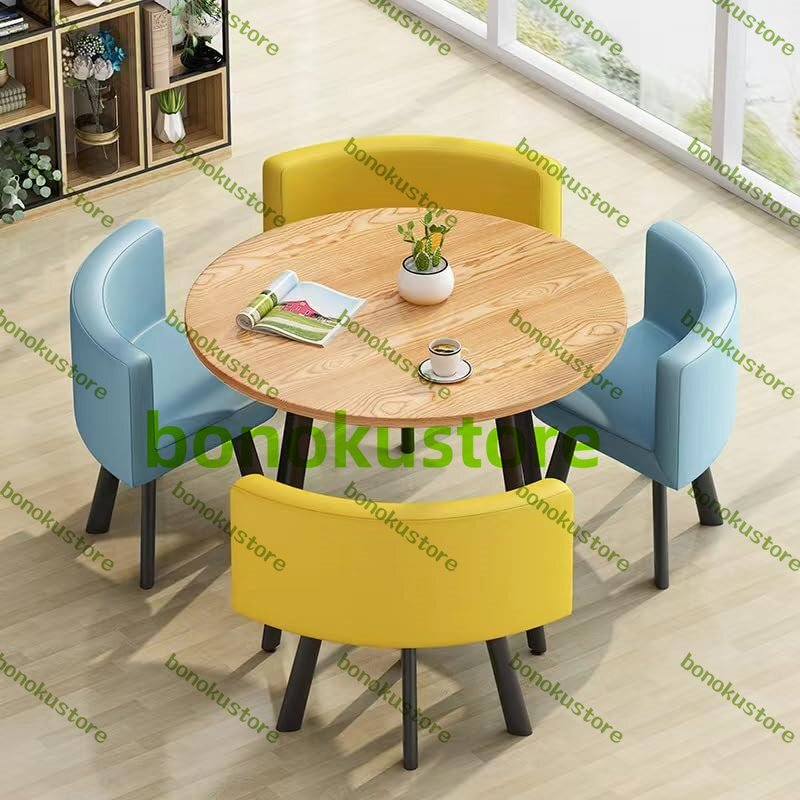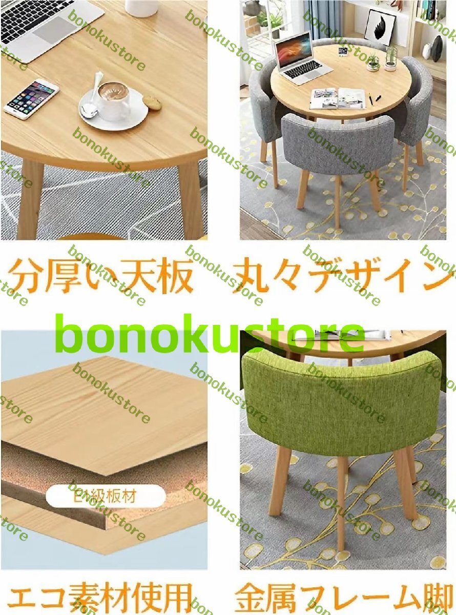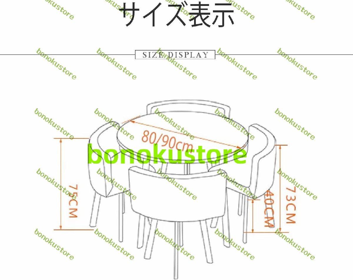 製品仕様:表80/90cmX75cm(直径X高さ);椅子73×40cm(高さ×シートマット距離)。包装:1表4椅子。