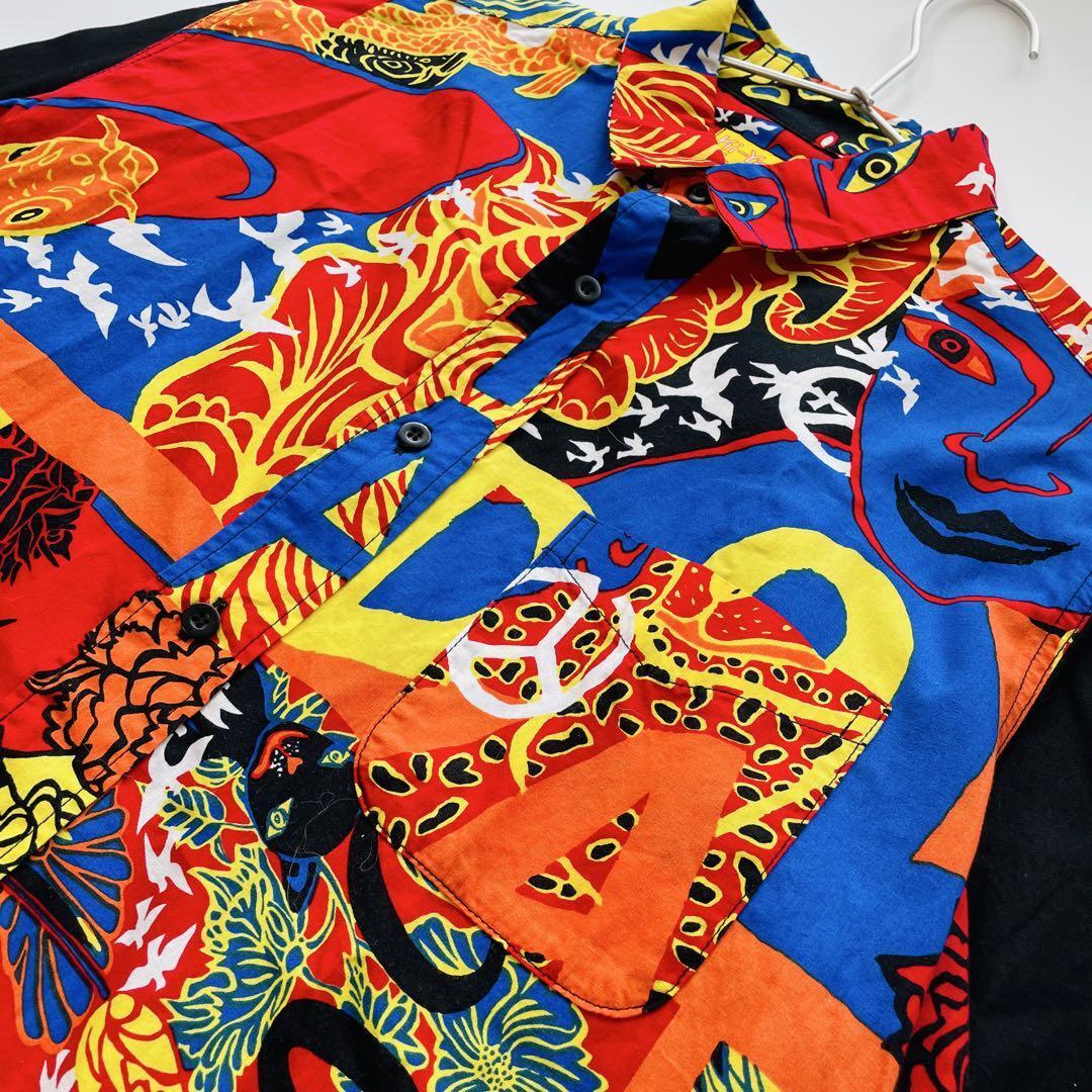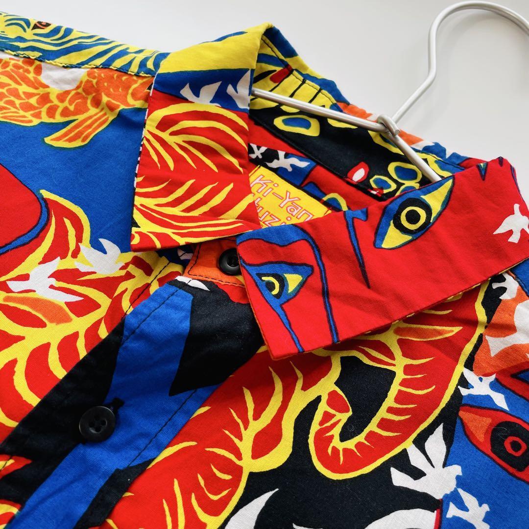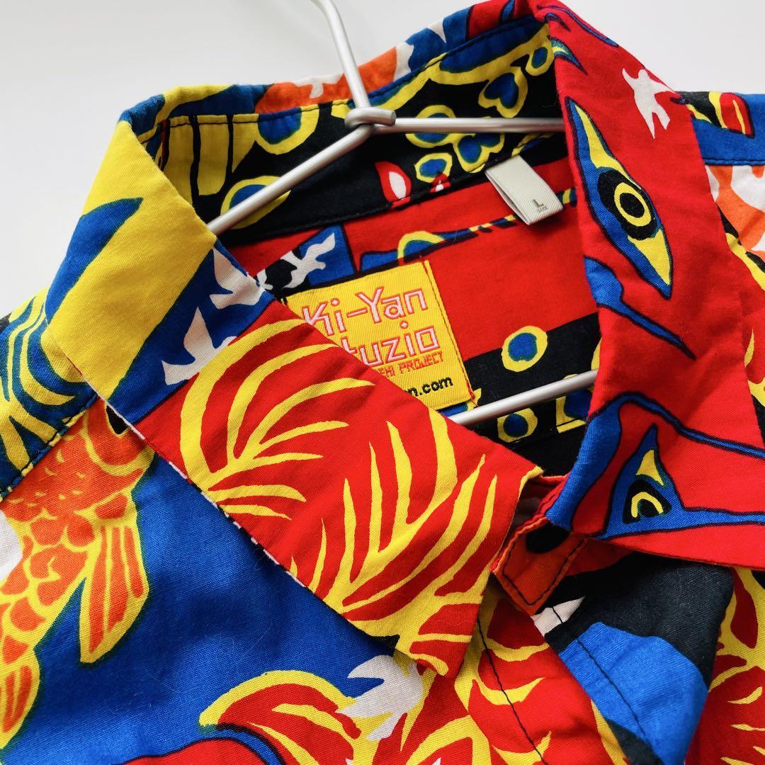 希少Ki-Yan Stuzio(キーヤンスタジオ)長袖シャツ 和柄 奇抜 派手柄 コットン100% 日本製 メンズ M相当 鯉 アート柄 総柄シャツ