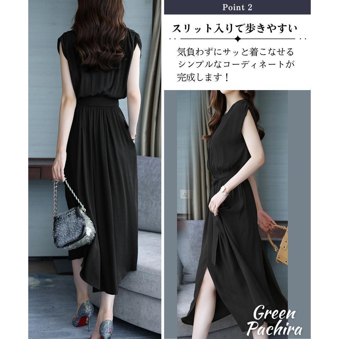 ベルトは外せばウエストはゴムが施されており、上品でカジュアルな雰囲気に様変わり。裾はスリットが入っており足さばきがよくなり、ちょい肌見せでセクシーさも加わり夏の季節にピッタリです。