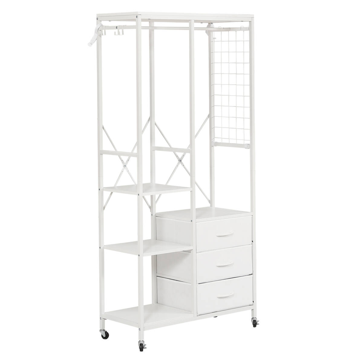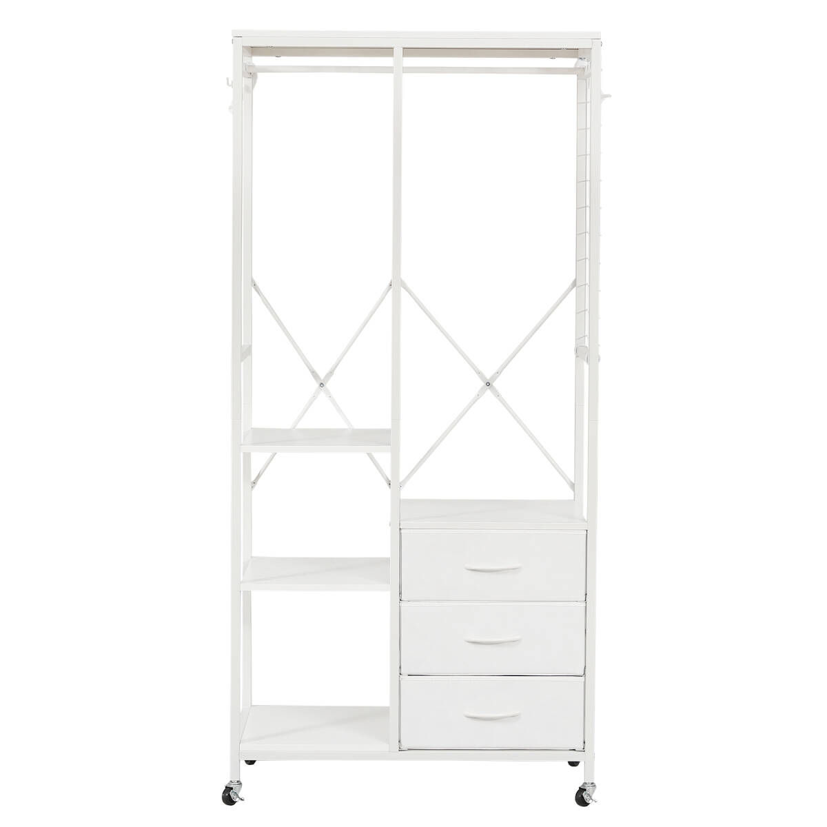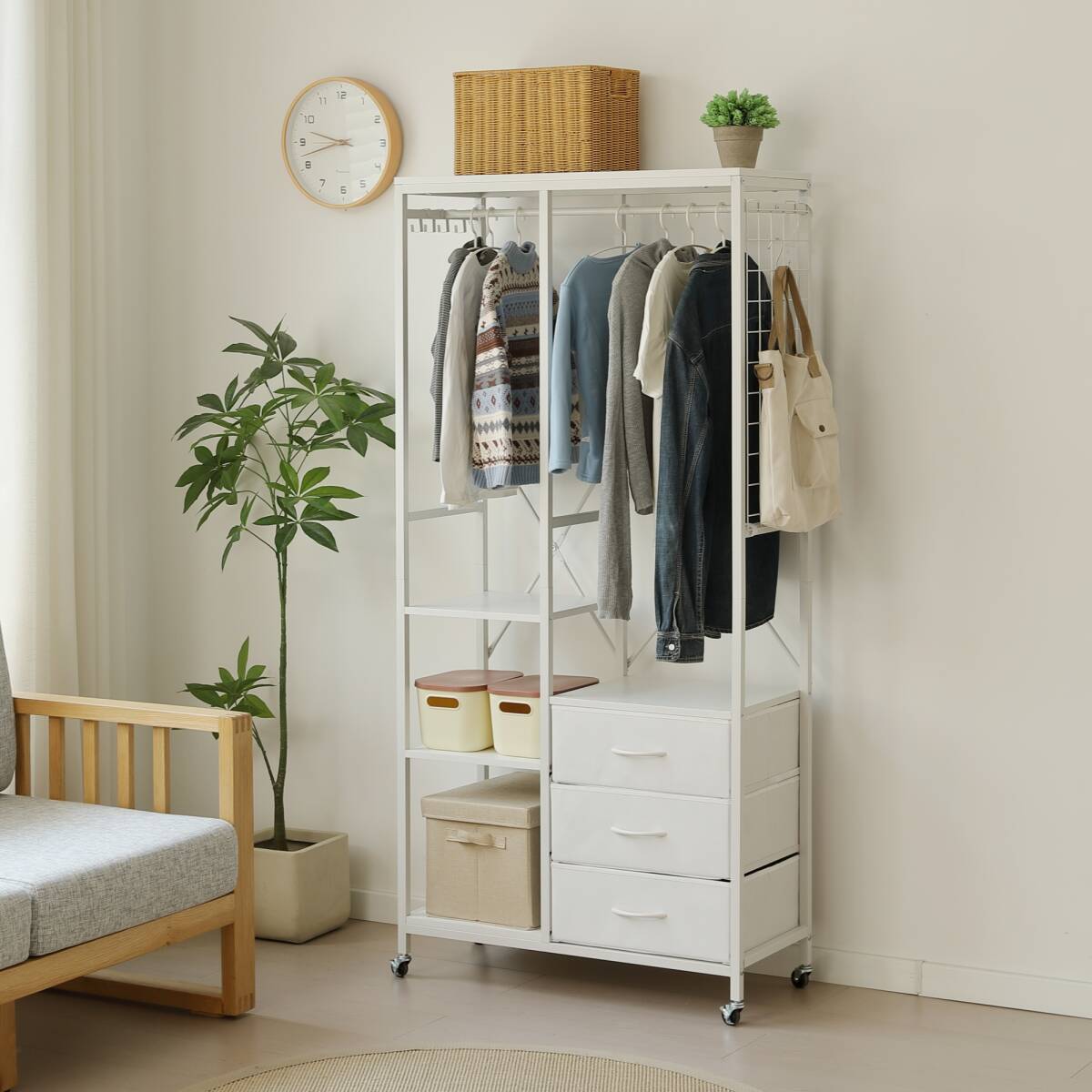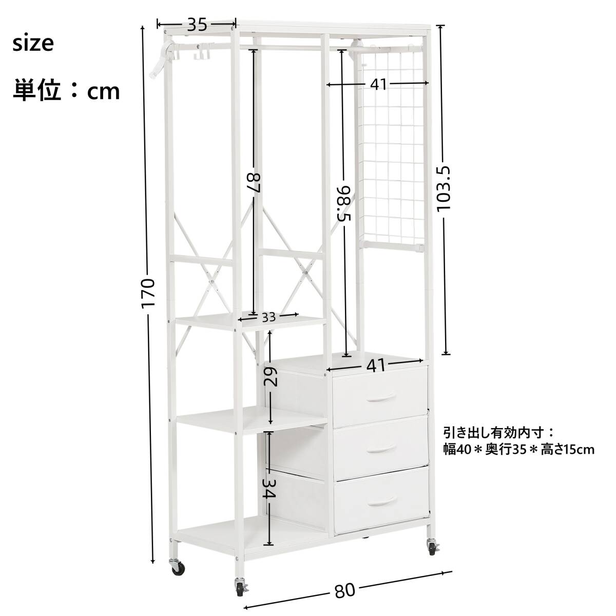 ハンガーラック 引き出し付きスリム 幅80cm 奥行35cm タンス付き ワードローブ 衣装棚 押し入れ 収納ラック 大容量