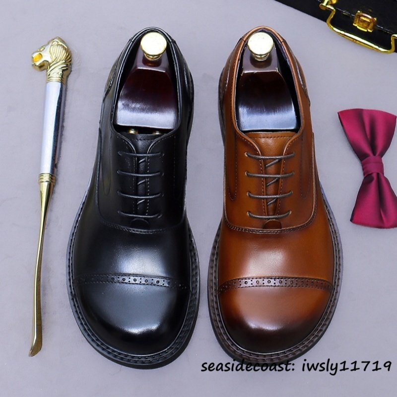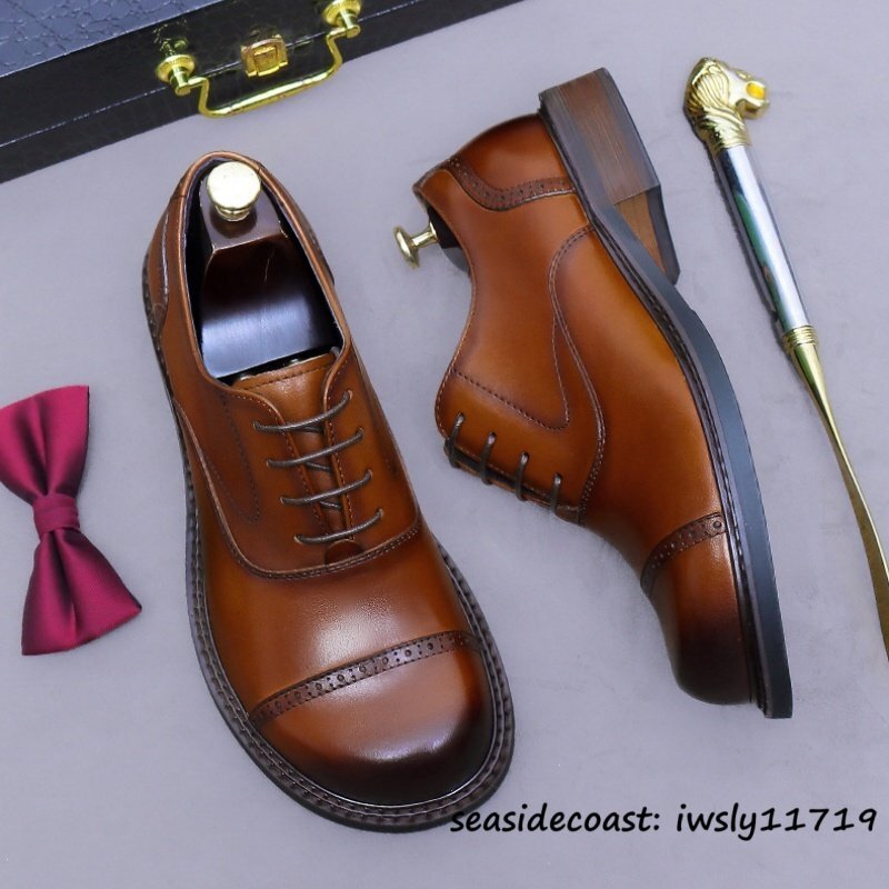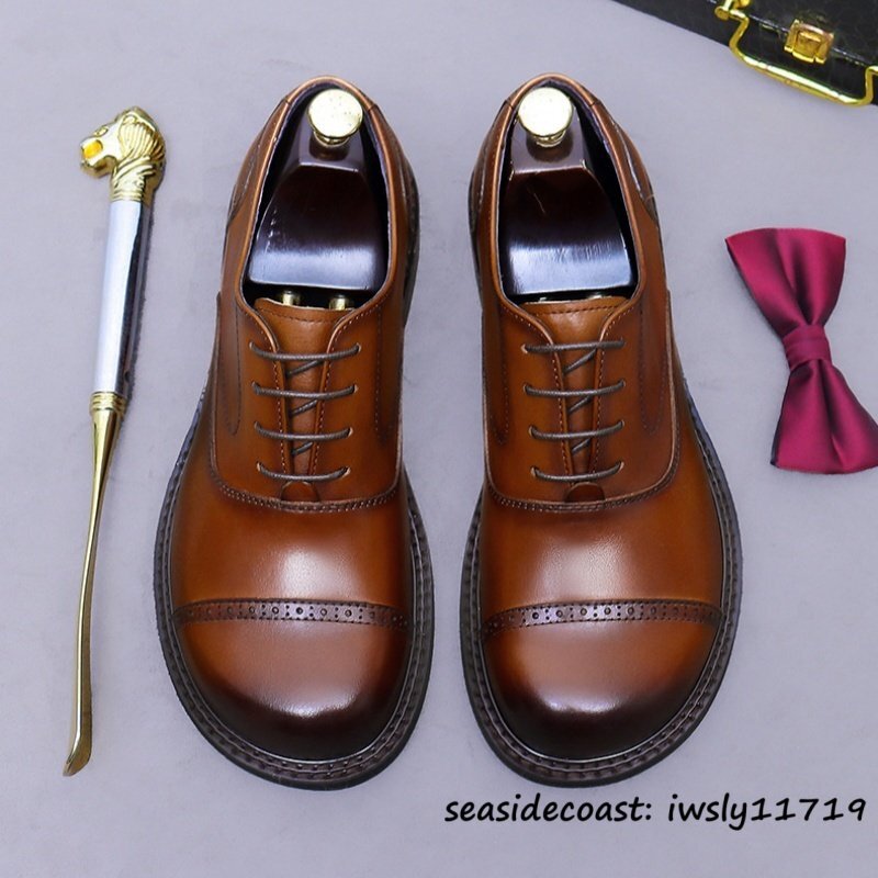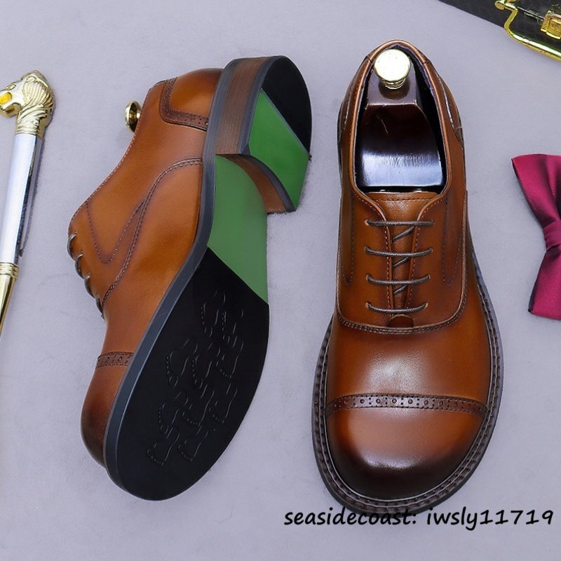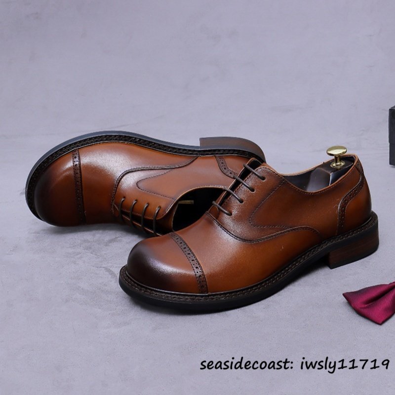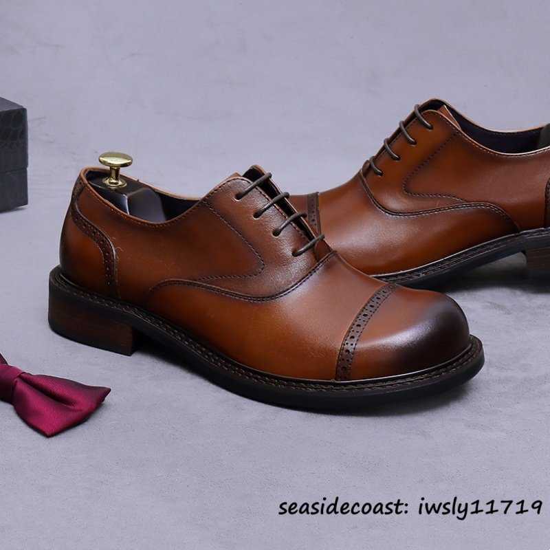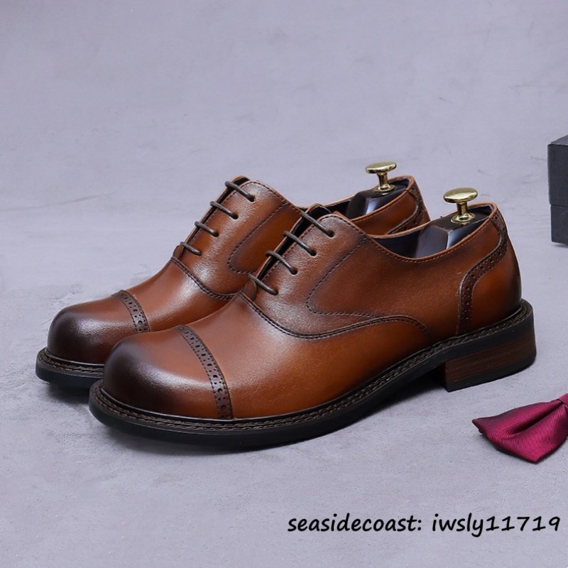 定価10万◆最高級 本革 ドレスシューズ ビジネスシューズ 牛革 レザーシューズ 職人手作り 新品 フォーマル 紳士靴 革靴 ブラウン 25.0cm