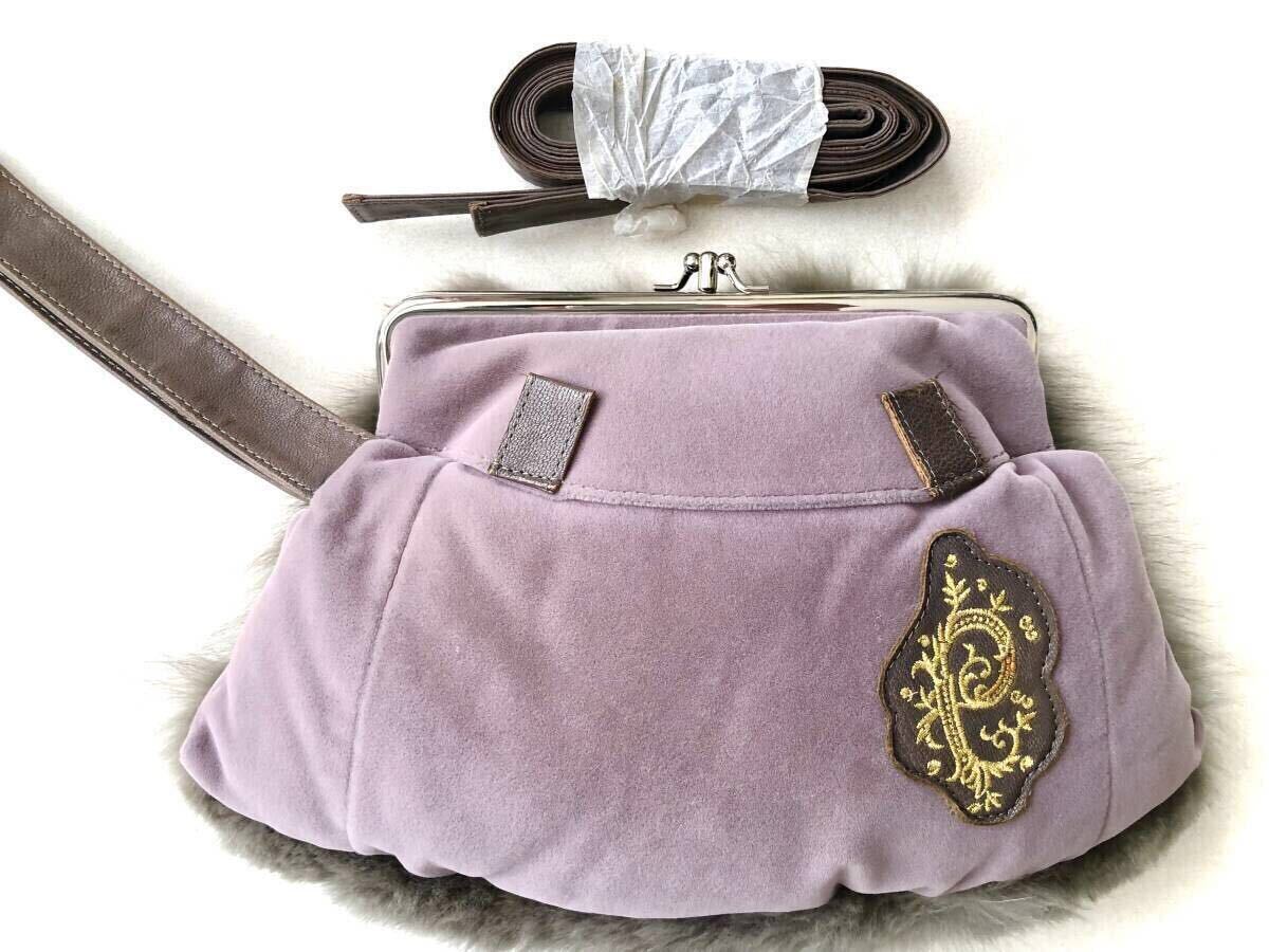 定¥1.8万【Poirier】リアルフォックスファーがま口ハンドバッグ クラッチバッグ