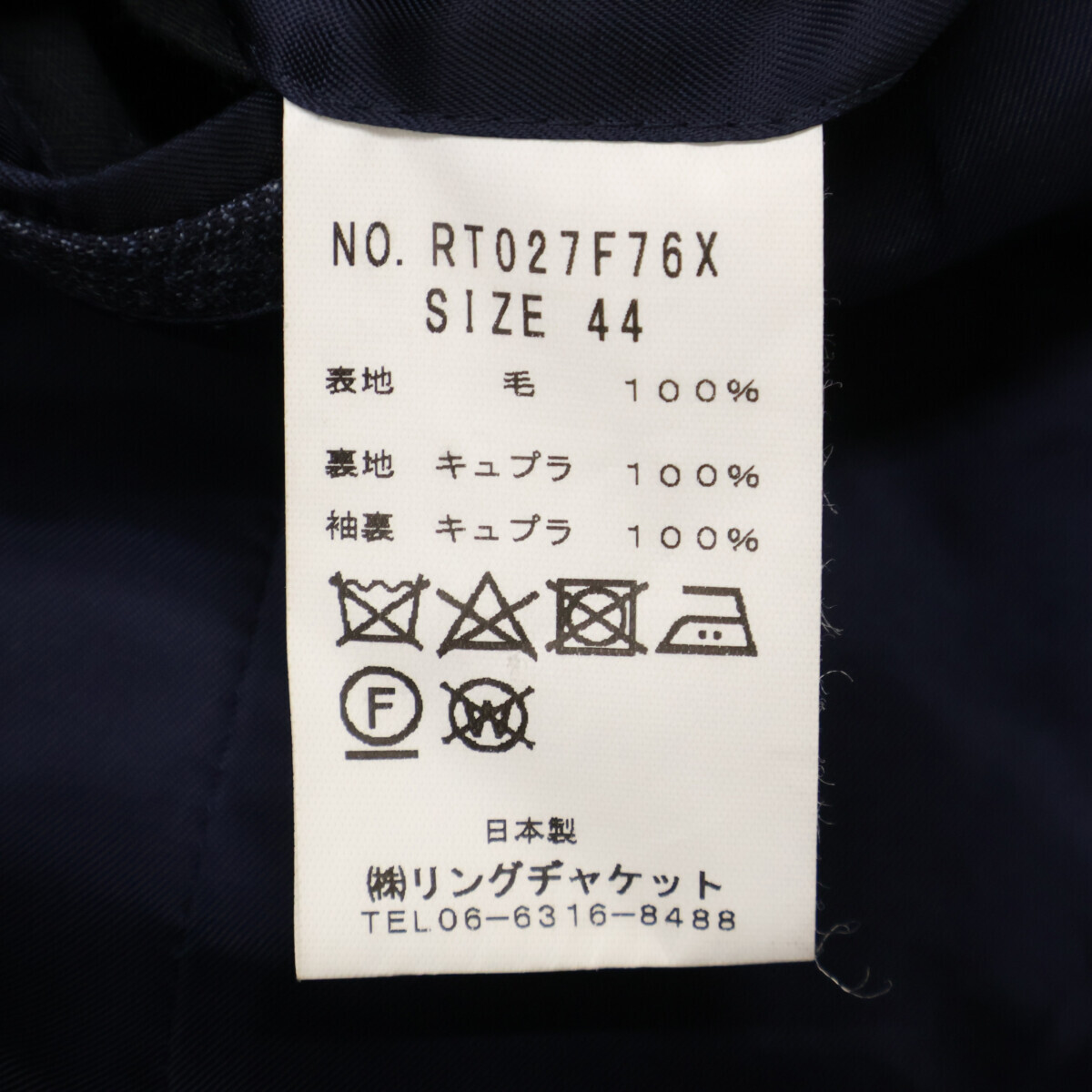 RING JACKET リングヂャケット RT027F76X ネイビー サイドベンツ 段返り3つボタン スーツ ネイビー 44 スーツ ウール メンズ 中古