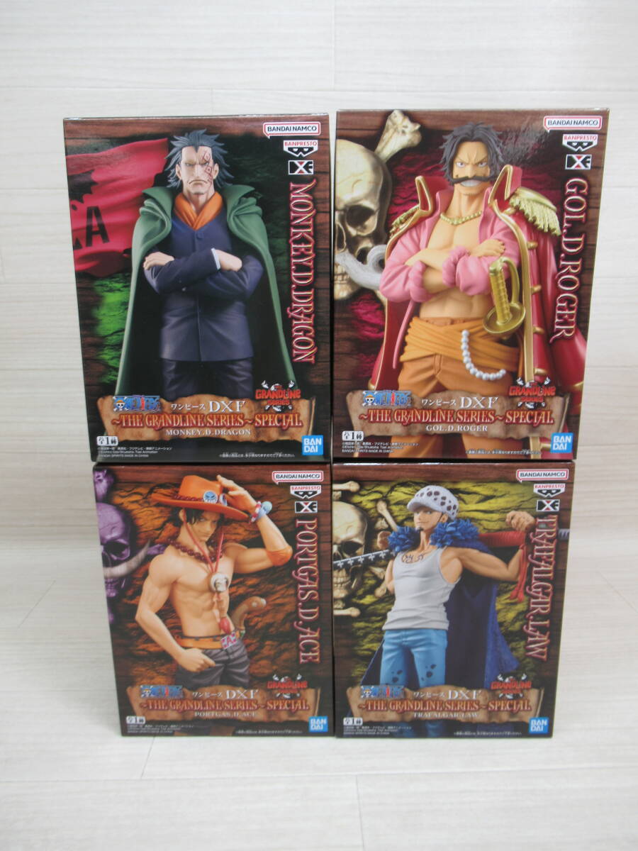 09/A550★フィギュア 4種セット★ワンピース DXF THE GRANDLINE SERIES SPECIAL エース/ロー/ドラゴン/ロジャー★二度貼りあり★未開封品