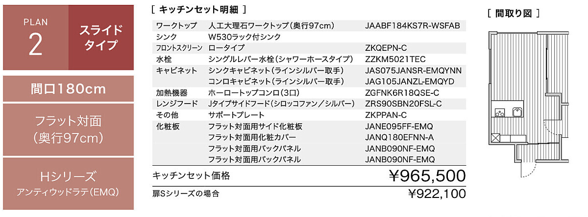 ◎クリナップ・コンパクトキッチン『新コルティ』スライドタイプ・3口コンロ 間口1800mm・フラット対面型・即決価格は、写真セット定価965.500円のなんと 52%OFFで509.784円【消費税込】 ◆うれしい機能がギュッとつまったコンパクトキッチンです。 ◆フラット対面型の、奥の物も取り出しやすいスライド収納。 ◆お手頃価格で、上から収納物を見渡せる、スライドタイプ。 ◆扉の色は、Hシリーズ11色から選択できます。 ◆写真の扉の色は、アンティウッドラテ。高級感ある光沢仕上げ。 ◆ワークトップは、人工大理石です。 ◆シャワーホース付『シングルレバー水栓』 ◆Jタイプサイドフードのシロッコファンが付いています。 ◆W530のシンク、シルバー仕様の3口コンログリル付。 ◆シンクの位置は、右側・左側から選択してください。 ◆CAボードは価格に含まれていません。 | |